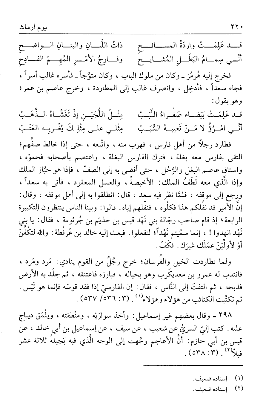٢٩٨ - وقال بعضهم غير إسماعيل: وأخذ سوارَيْه، ومنْطقته، ويلْمَق ديباج عليه. كتب إليّ السريُّ عن شعيب، عن سيف، عن إسماعيل بن أبي خالد، عن قيس بن أبي حازم: أنَّ الأعاجم وجَّهت إلى الوجه الَّذي فيه بَجيلةُ ثلاثة عشر فيلًا (٢). (٣: ٥٣٨).