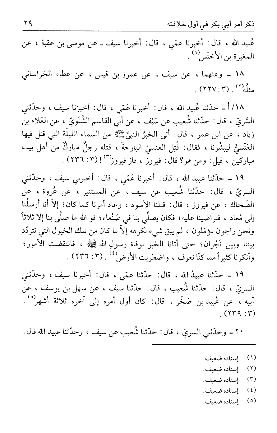 ٢٠ - وحدّثني السريّ، قال: حدَّثنا شُعيب عن سيف، وحدّثنا عبيد الله قال: