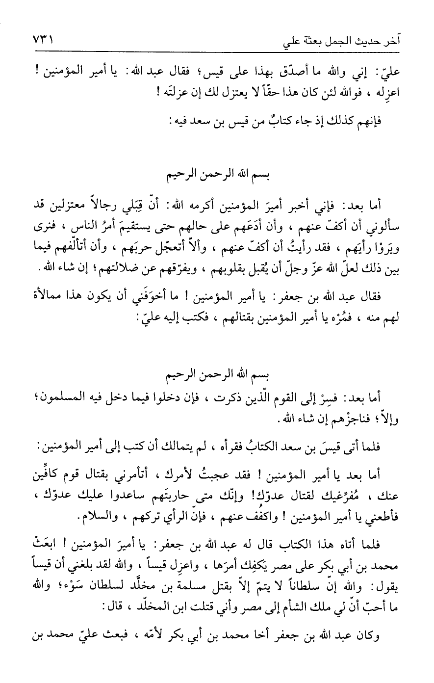 عليّ: إني والله ما أصدّق بهذا على قيس؛ فقال عبد الله: يا أمير المؤمنين! اعزِله، فوالله لئن كان هذا حقًّا لا يعتزل لك إن عزلتَه!