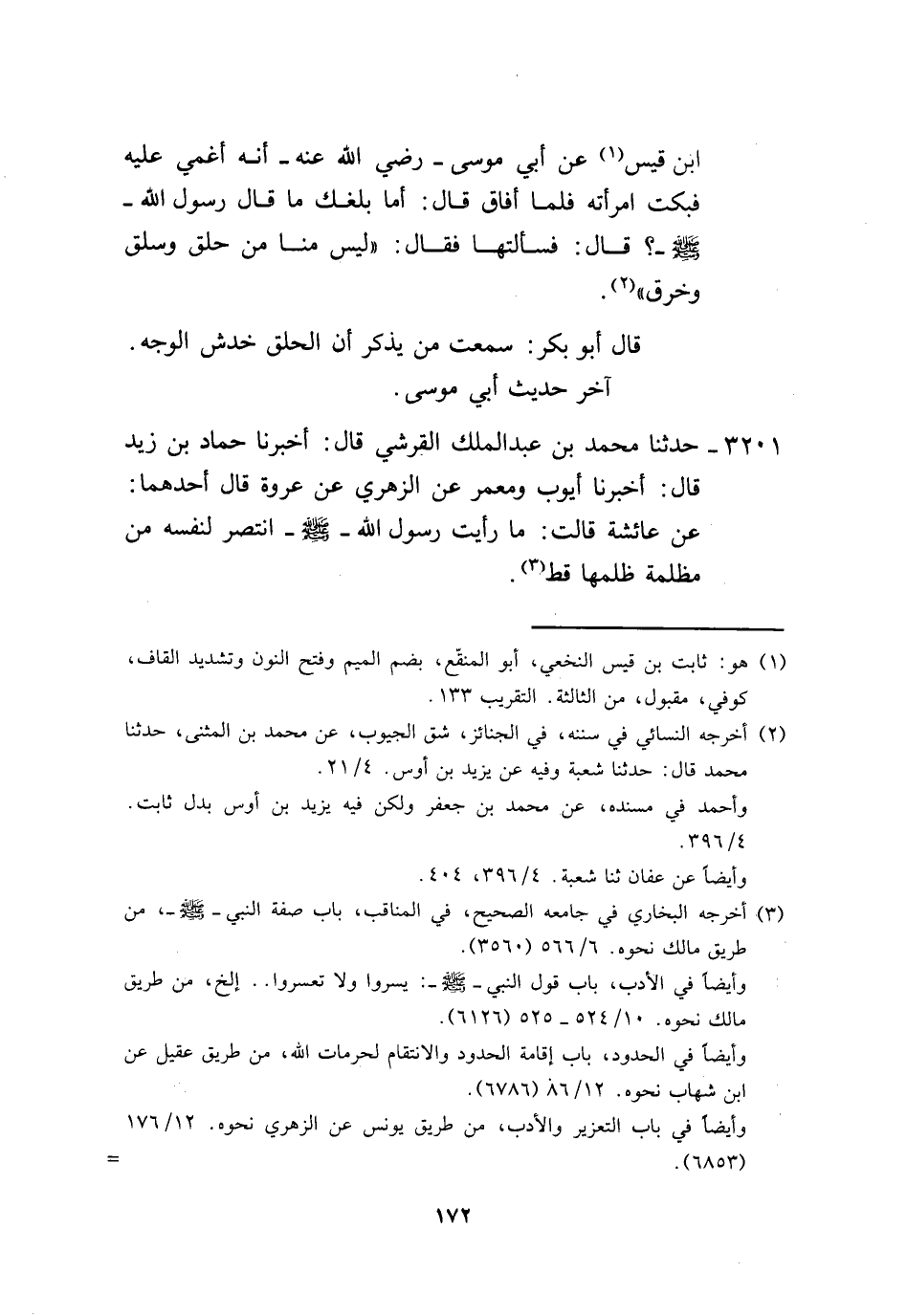3201 - حَدَّثَنَا مُحَمَّدُ بْنُ عَبْدِ الْمَلِكِ الْقُرَشِيُّ، قَالَ: أَخْبَرَنَا حَمَّادُ بْنُ زَيْدٍ، قَالَ: أَخْبَرَنَا أَيُّوبُ، وَمَعْمَرٌ، عَنِ الزُّهْرِيِّ، عَنْ عُرْوَةَ، قَالَ أَحَدُهُمَا: عَنْ عَائِشَةَ، قَالَتْ: «§مَا رَأَيْتُ رَسُولَ اللَّهِ صَلَّى اللهُ عَلَيْهِ وَسَلَّمَ انْتَصَرَ لِنَفْسِهِ مِنْ مَظْلَمَةٍ ظُلِمَهَا قَطُّ»