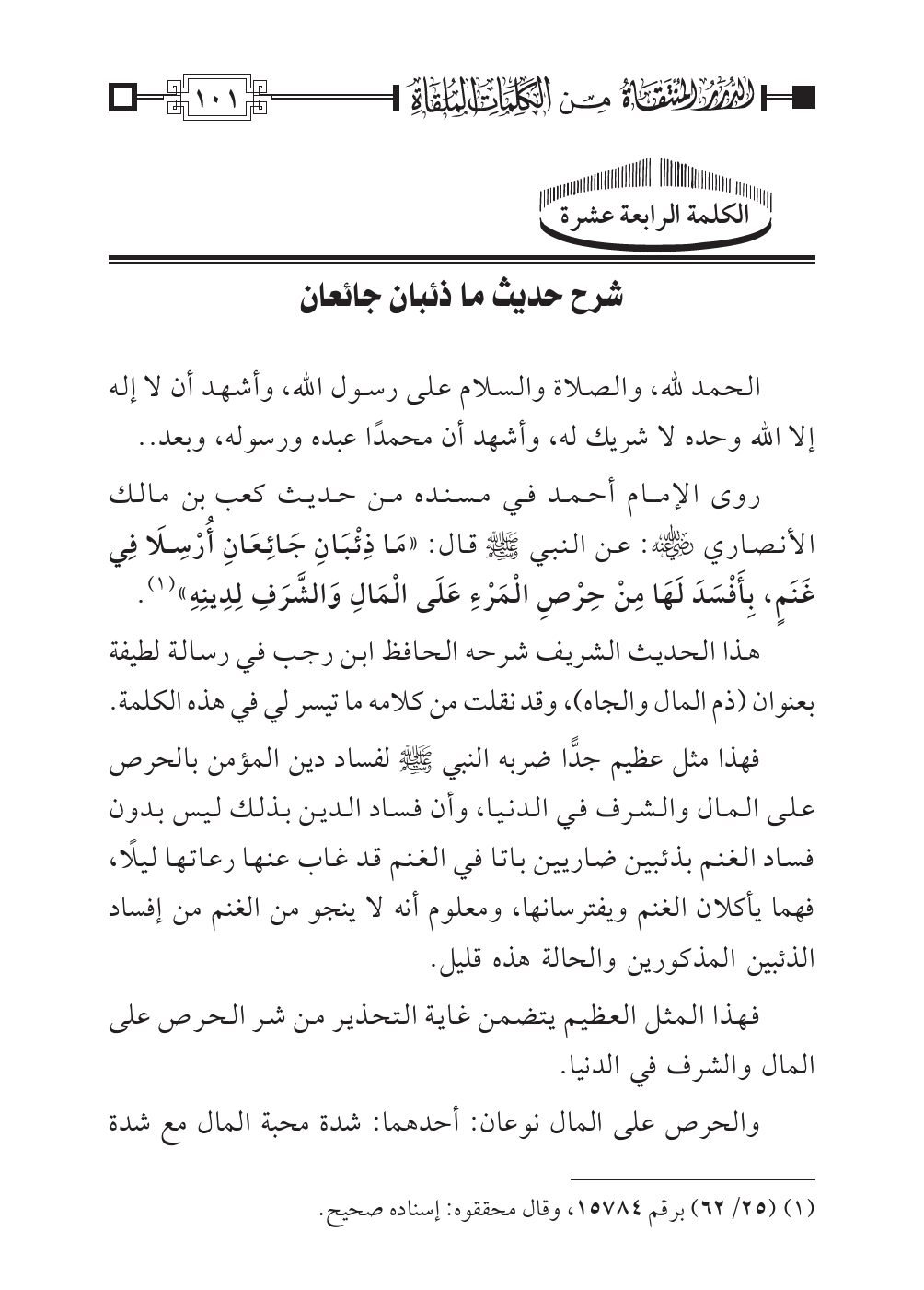 الكلمة الرابعة عشرة: شرح حديث «ما ذئبان جائعان»