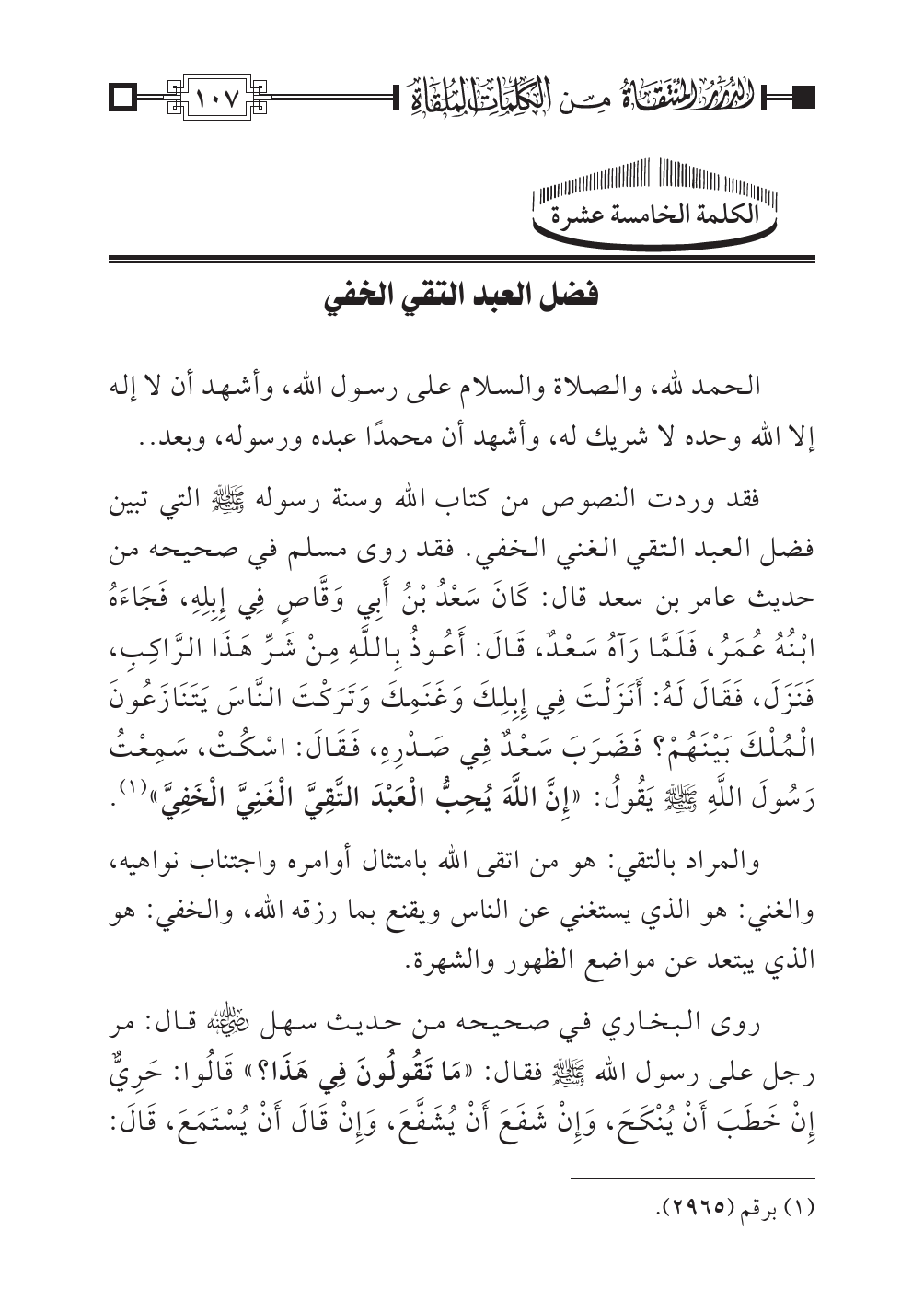 الكلمة الخامسة عشرة: فضل العبد التقي الخفي