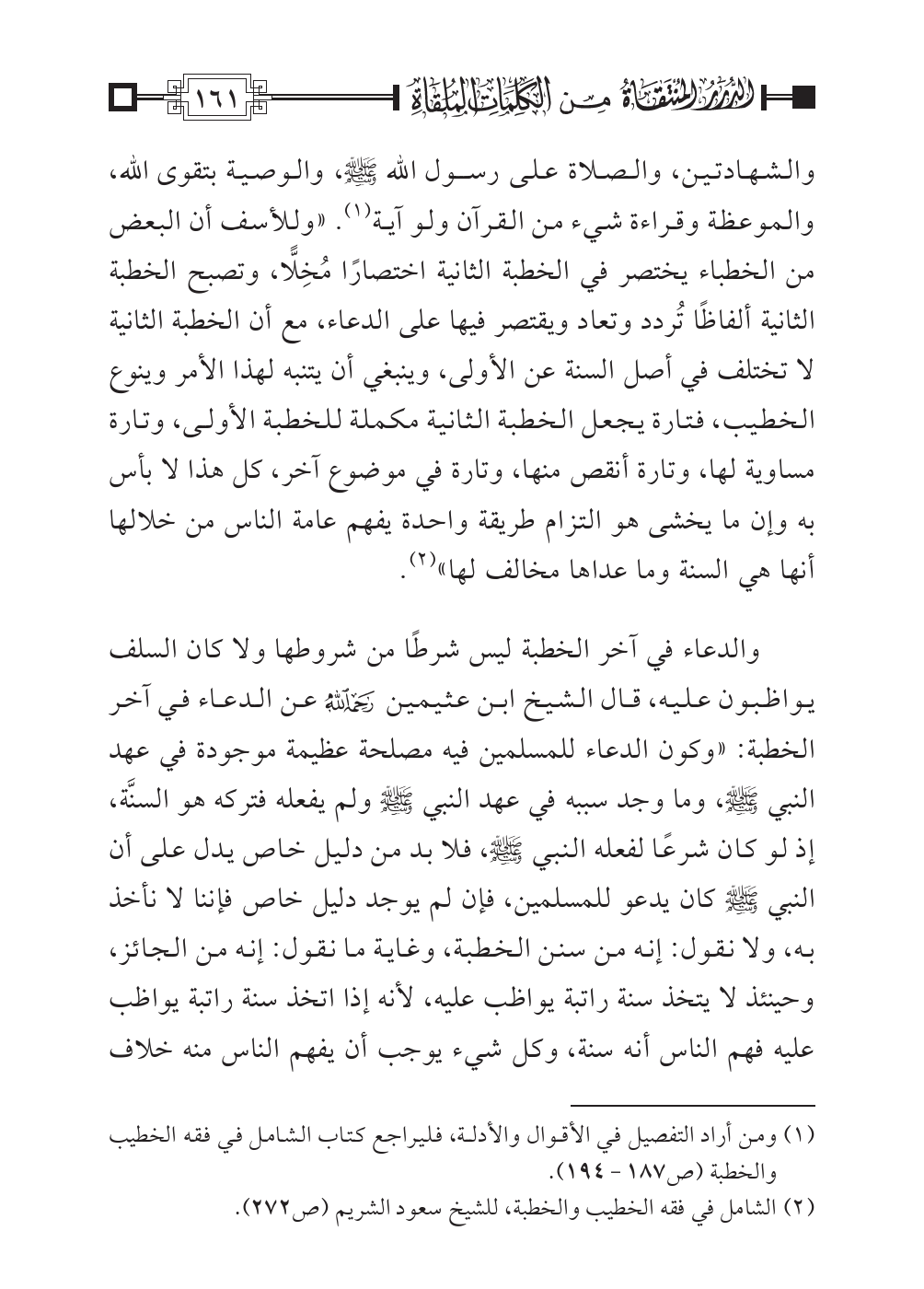 (¬٢) الشامل في فقه الخطيب والخطبة، للشيخ سعود الشريم (ص: ٢٧٢).