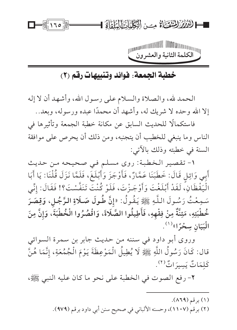 الكلمة الثانية والعشرون: خطبة الجمعة: فوائد وتنبيهات رقم (٢)
