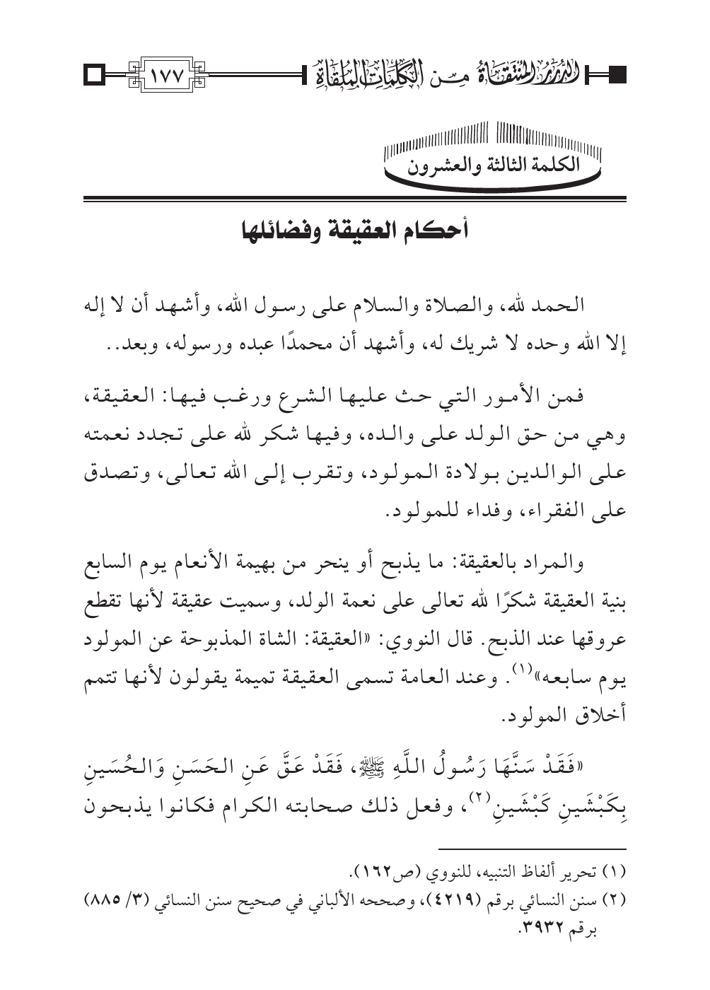 الكلمة الثالثة والعشرون: أحكام العقيقة وفضائلها