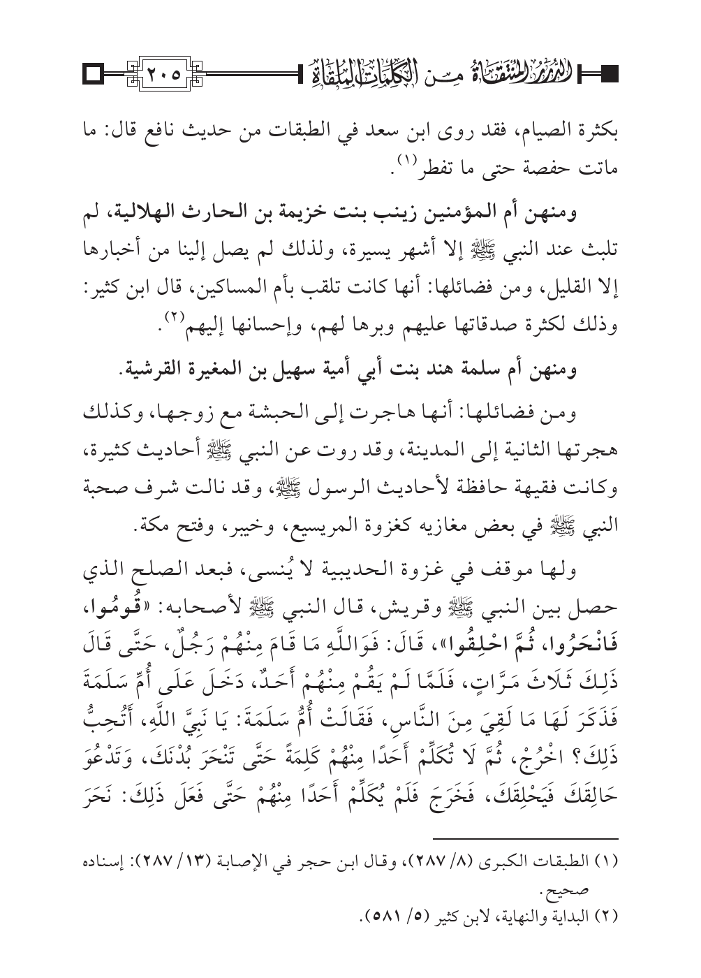 (¬١) الطبقات الكبرى (٨/ ٢٨٧)، وقال ابن حجر في الإصابة (١٣/ ٢٨٧): إسناده صحيح.