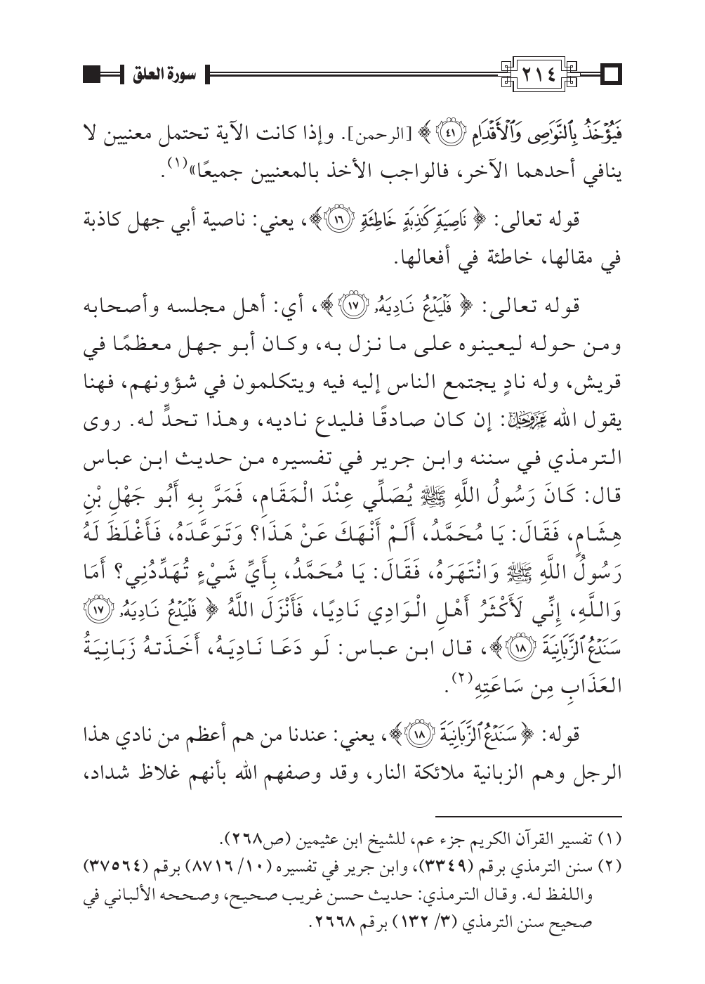 (¬١) تفسير القرآن الكريم جزء عم، للشيخ ابن عثيمين (ص: ٢٦٨).