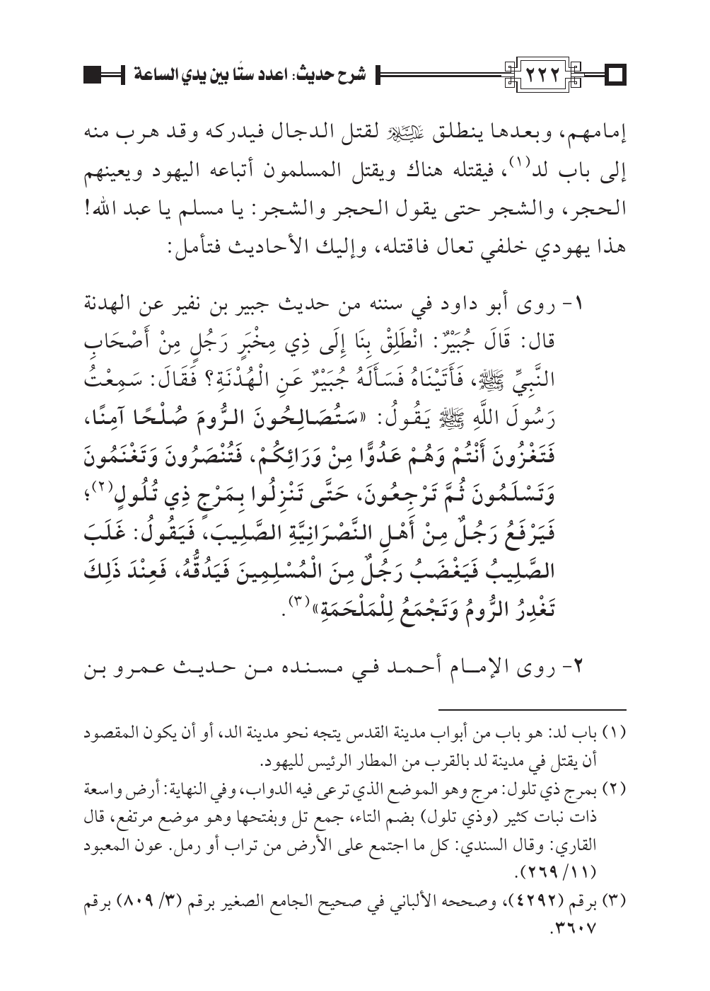 (¬١) باب لد: هو باب من أبواب مدينة القدس يتجه نحو مدينة الد، أو أن يكون المقصود أن يقتل في مدينة لد بالقرب من المطار الرئيس لليهود.