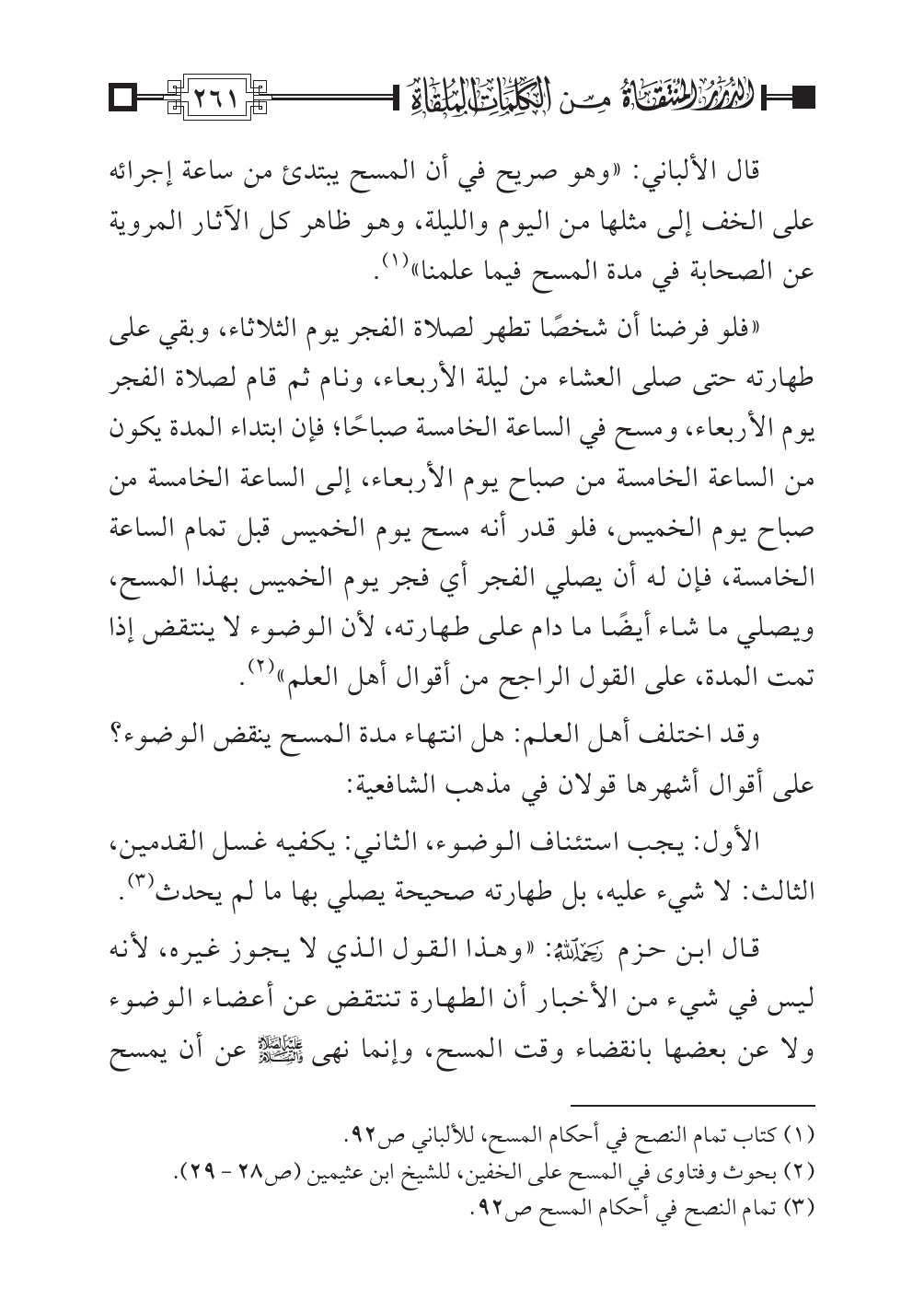 (¬٢) بحوث وفتاوى في المسح على الخفين، للشيخ ابن عثيمين (ص: ٢٨ - ٢٩).