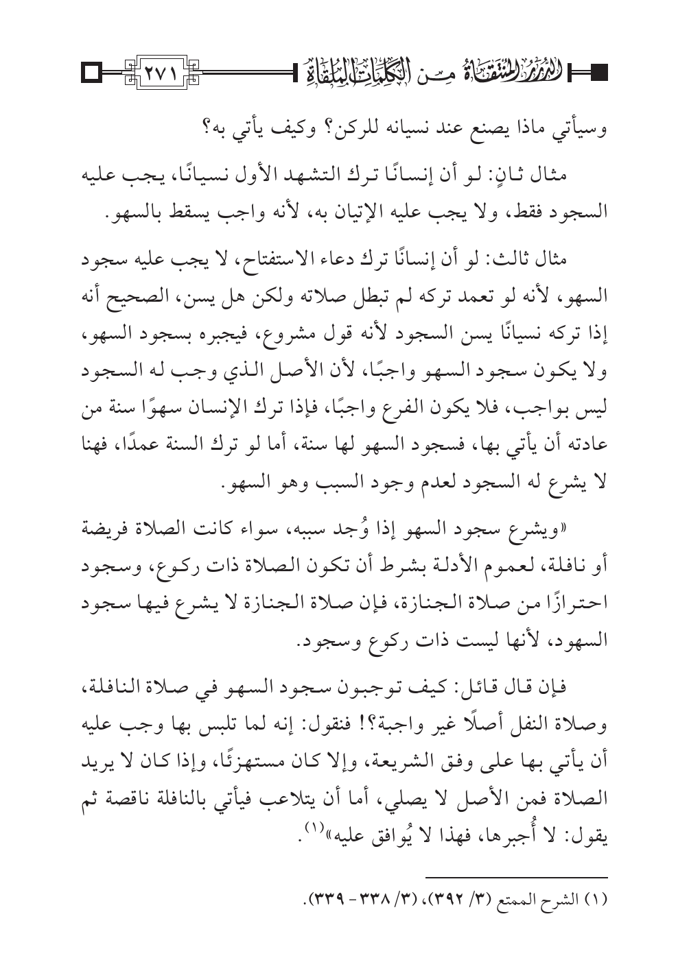 (¬١) الشرح الممتع (٣/ ٣٩٢)، (٣/ ٣٣٨ - ٣٣٩).