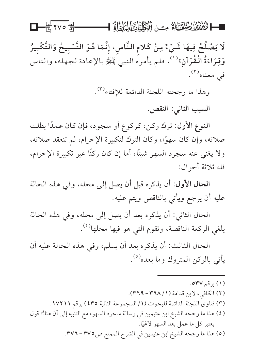 (¬٥) هذا ما رجحه الشيخ ابن عثيمين في الشرح الممتع ص: ٣٧٥ - ٣٧٦.