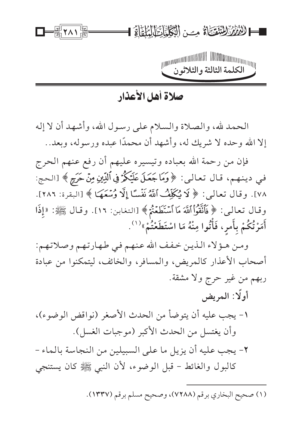 الكلمة الثالثة والثلاثون: صلاة أهل الأعذار