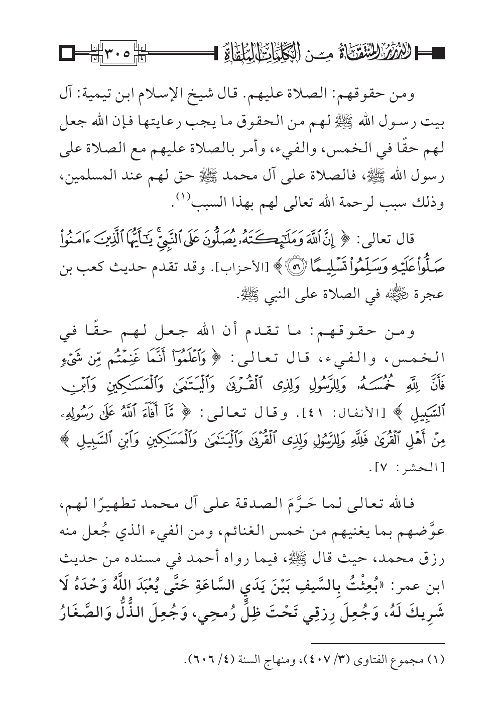 (¬١) مجموع الفتاوى (٣/ ٤٠٧)، ومنهاج السنة (٤/ ٦٠٦).