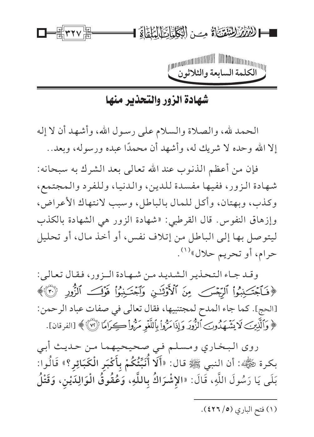 الكلمة السابعة والثلاثون: شهادة الزور والتحذير منها