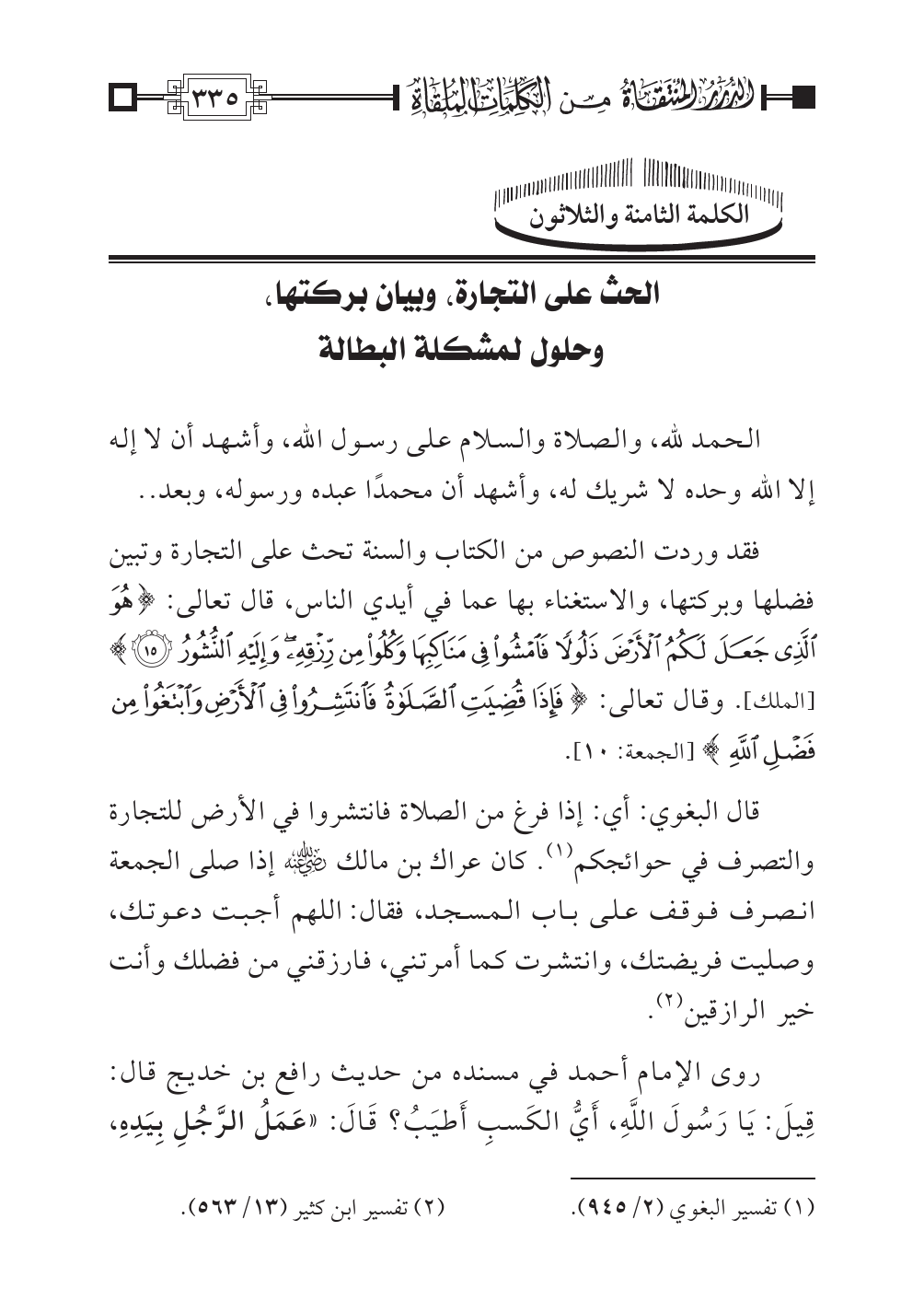 الكلمة الثامنة والثلاثون: الحث على التجارة، وبيان بركتها،