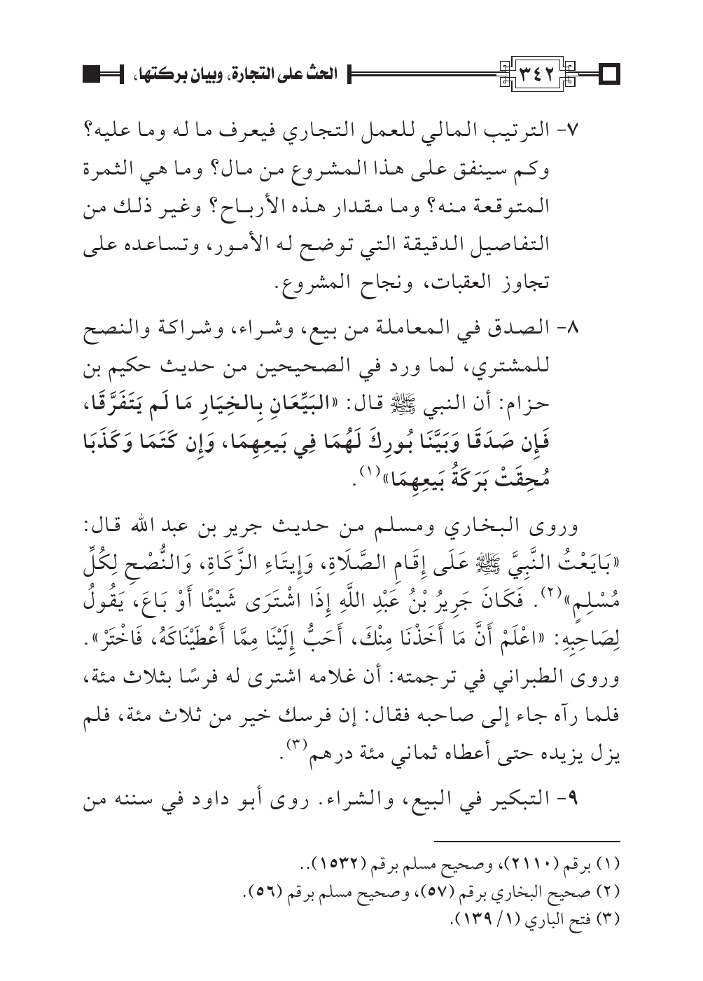 ٩ - التبكير في البيع، والشراء. روى أبو داود في سننه من