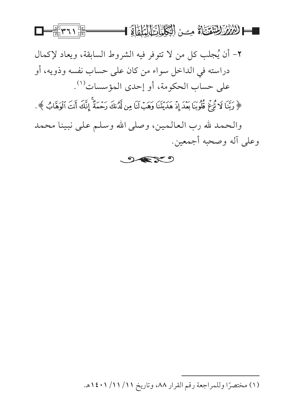 (¬١) مختصرًا وللمراجعة رقم القرار ٨٨، وتاريخ ١١/ ١١ / ١٤٠١ هـ.