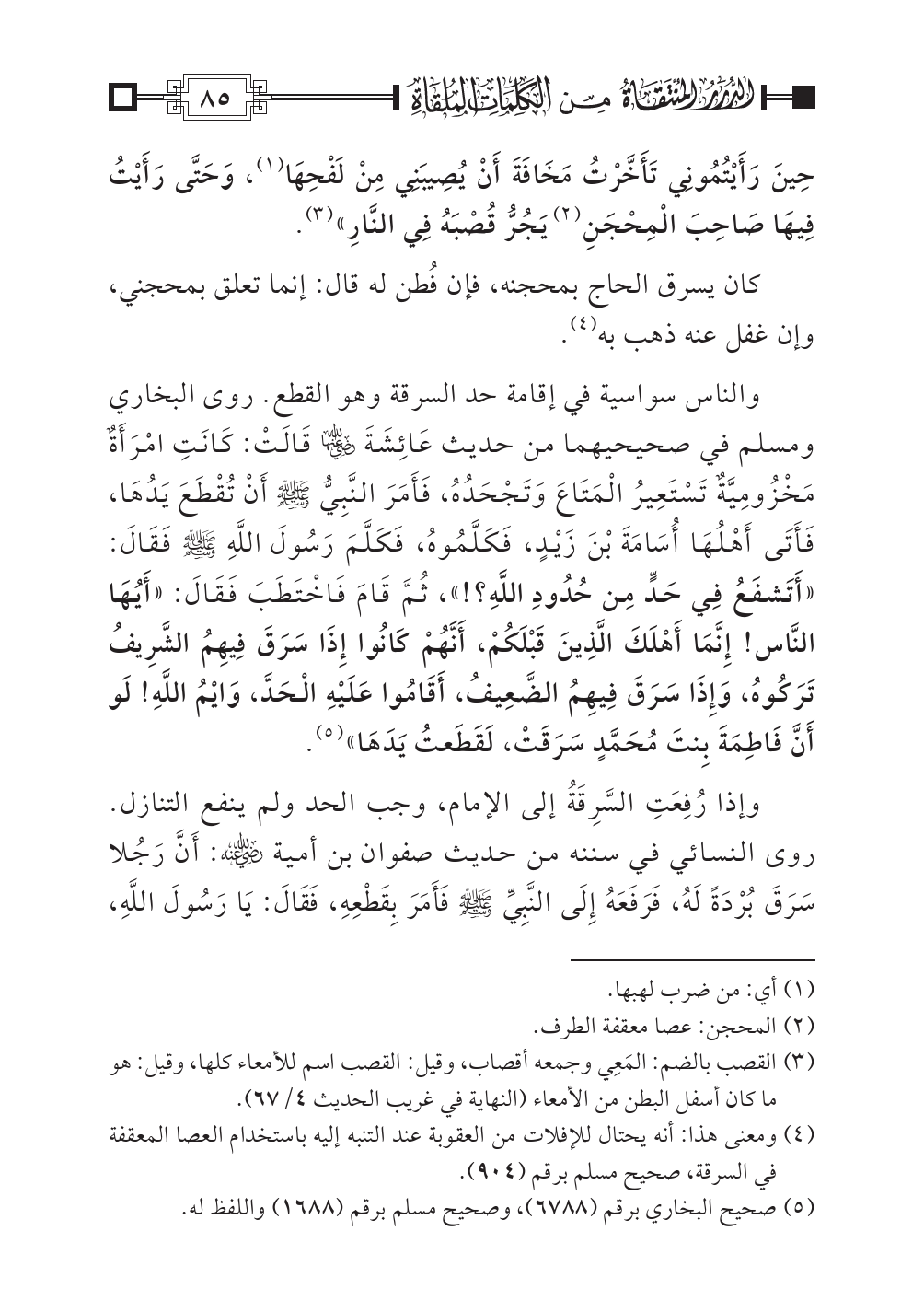 (¬٤) ومعنى هذا: أنه يحتال للإفلات من العقوبة عند التنبه إليه باستخدام العصا المعقفة في السرقة، صحيح مسلم برقم (٩٠٤).