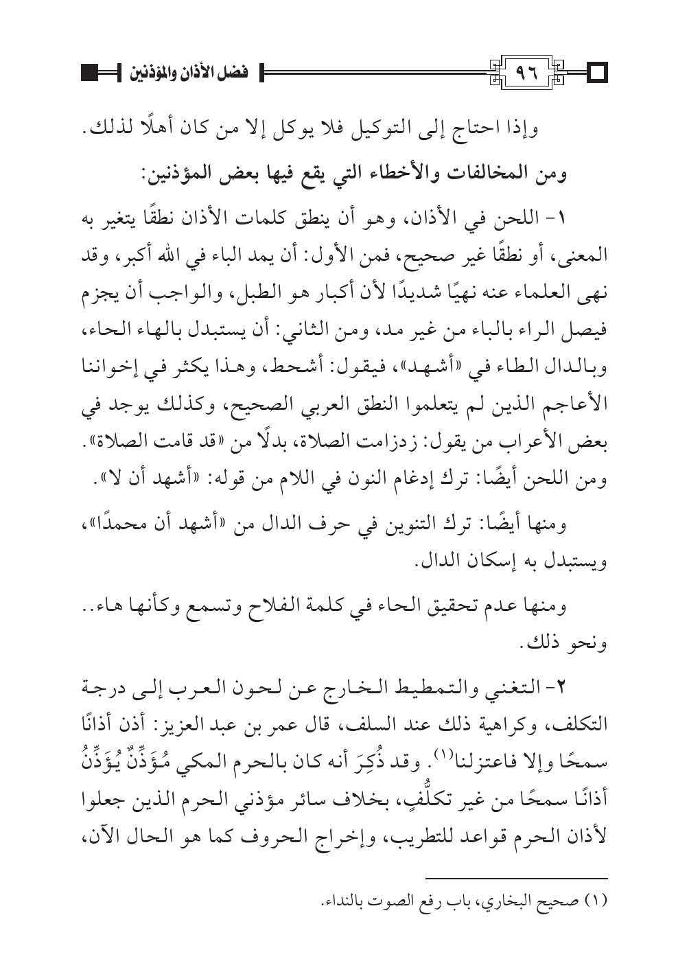 ومن المخالفات والأخطاء التي يقع فيها بعض المؤذنين: