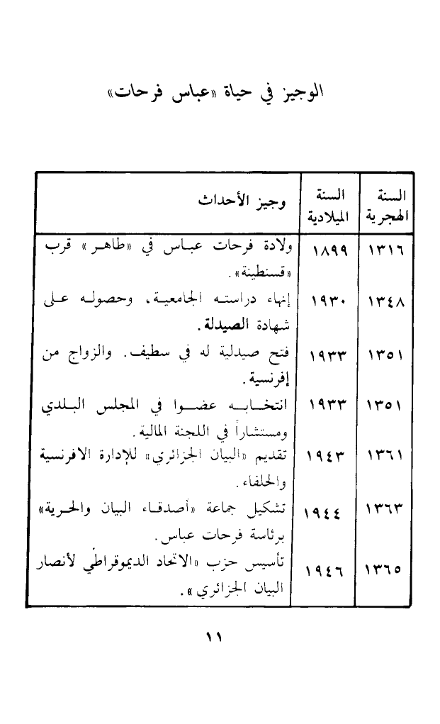 1361 .......... 1943 .......... تقديم (البيان الجرائري) للإدارة الإفرنسية والحلفاء.