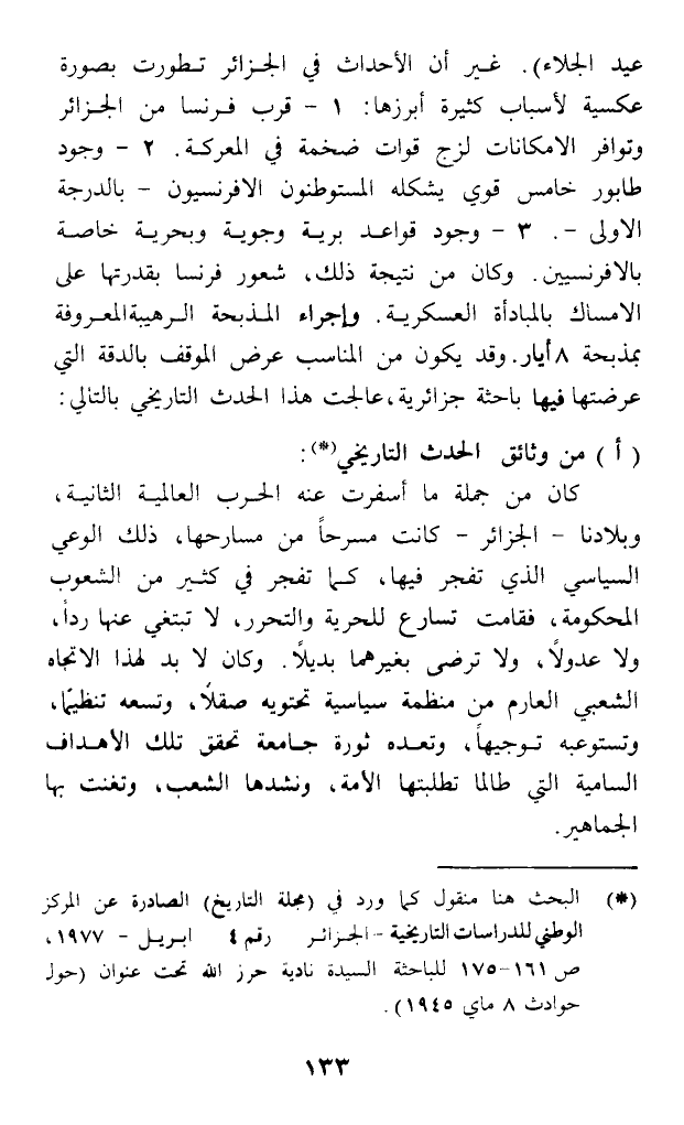 (*) البحث هنا منقول كما ورد في (مجلة التاريخ) الصادرة عن المركز الوطني للدراسات التاريخية - الجزائر رقم 4 أبريل - 1977، ص161 - 175 للباحثة السيدة نادية حرز الله تحت عنوان (حول حوادث 8 ماي 1945).