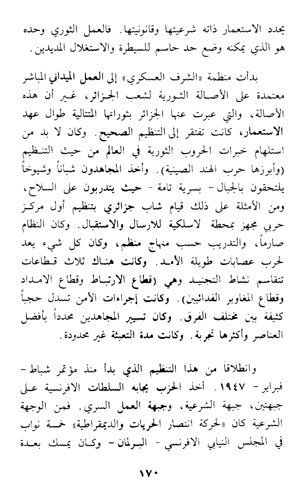 يحدد الاستعمار ذاته شرعيتها وقانونيتها. فالعمل الثوري وحده هو الذي يمكنه وضع حد حاسم للسيطرة والاستغلال المديدين.