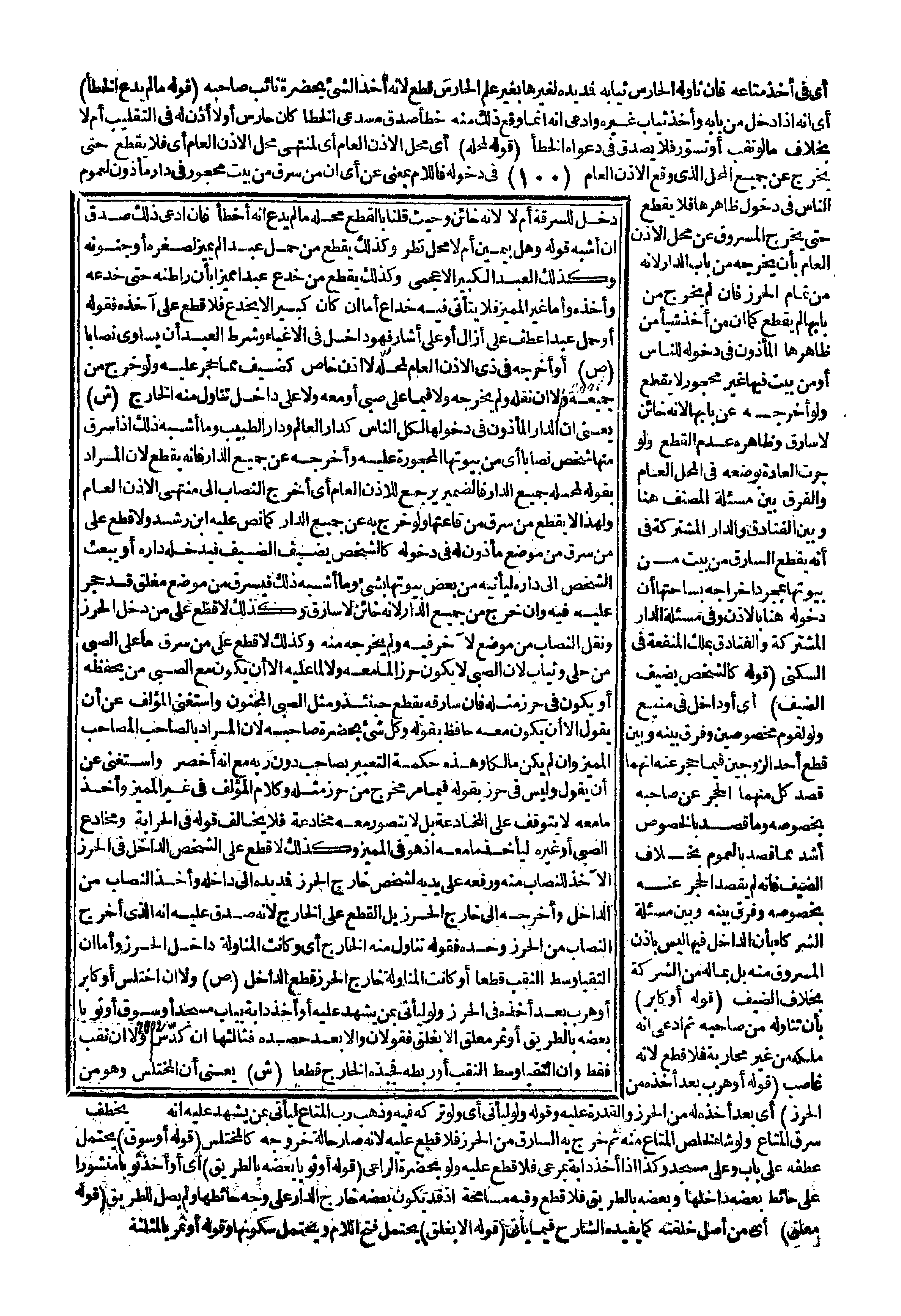 . (ص) أَوْ أَخْرَجَهُ فِي ذِي الْإِذْنِ الْعَامِّ لِمَحِلِّهِ لَا إذْنٍ خَاصٍّ كَضَيْفٍ مِمَّا حُجِرَ عَلَيْهِ، وَلَوْ خَرَجَ مِنْ جَمِيعِهِ، وَلَا إنْ نَقَلَهُ، وَلَمْ يُخْرِجْهُ، وَلَا فِيمَا عَلَى صَبِيٍّ، أَوْ مَعَهُ وَلَا عَلَى دَاخِلٍ تَنَاوَلَ مِنْهُ الْخَارِجُ. (ش) يَعْنِي أَنَّ الدَّارَ الْمَأْذُونَ فِي دُخُولِهَا لِكُلِّ النَّاسِ كَدَارِ الْعَالِمِ، وَدَارِ الطَّبِيبِ، وَمَا أَشْبَهَ ذَلِكَ إذَا سَرَقَ مِنْهَا شَخْصٌ نِصَابًا أَيْ: مِنْ بُيُوتِهَا الْمَحْجُورَةِ عَلَيْهِ، وَأَخْرَجَهُ عَنْ جَمِيعِ الدَّارِ، فَإِنَّهُ يُقْطَعُ؛ لِأَنَّ الْمُرَادَ بِقَوْلِهِ؛ لِمَحِلِّهِ جَمِيعُ الدَّارِ، فَالضَّمِيرُ يَرْجِعُ لِلْإِذْنِ الْعَامِّ أَيْ: أَخْرَجَ النِّصَابَ إلَى مُنْتَهَى الْإِذْنِ الْعَامِّ، وَلِهَذَا لَا يُقْطَعُ مَنْ سَرَقَ مِنْ قَاعَتِهَا، وَلَوْ خَرَجَ بِهِ عَنْ جَمِيعِ الدَّارِ كَمَا نَصَّ عَلَيْهِ ابْنُ رُشْدٍ، وَلَا قَطْعَ عَلَى مَنْ سَرَقَ مِنْ مَوْضِعٍ مَأْذُونٍ لَهُ فِي دُخُولِهِ كَالشَّخْصِ يُضَيِّفُ الضَّيْفَ، فَيُدْخِلُهُ دَارِهِ، أَوْ يَبْعَثُ الشَّخْصَ إلَى دَارِهِ لِيَأْتِيَهُ مِنْ بَعْضِ بُيُوتِهَا بِشَيْءٍ، وَمَا أَشْبَهَ ذَلِكَ فَيَسْرِقُ مِنْ مَوْضِعٍ مُغْلَقٍ قَدْ حُجِرَ عَلَيْهِ فِيهِ، وَإِنْ خَرَجَ مِنْ جَمِيعِ الدَّارِ؛ لِأَنَّهُ خَائِنٌ لَا سَارِقٌ، وَكَذَلِكَ لَا قَطْعَ عَلَى مَنْ دَخَلَ الْحِرْزَ، وَنَقَلَ النِّصَابَ مِنْ مَوْضِعٍ لِآخَرَ فِيهِ، وَلَمْ يُخْرِجْهُ مِنْهُ، وَكَذَلِكَ لَا قَطْعَ عَلَى مَنْ سَرَقَ مَا عَلَى الصَّبِيِّ مِنْ حُلِيٍّ وَثِيَابٍ؛ لِأَنَّ الصَّبِيَّ لَا يَكُونُ حِرْزًا لِمَا مَعَهُ، وَلَا لِمَا عَلَيْهِ إلَّا أَنْ يَكُونَ مَعَ الصَّبِيِّ مَنْ يَحْفَظُهُ، أَوْ يَكُونَ فِي حِرْزِ مِثْلِهِ، فَإِنَّ سَارِقَهُ يُقْطَعُ حِينَئِذٍ، وَمِثْلُ الصَّبِيِّ الْمَجْنُونُ، وَاسْتَغْنَى الْمُؤَلِّفُ عَنْ أَنْ يَقُولَ: إلَّا أَنْ يَكُونَ مَعَهُ حَافِظٌ بِقَوْلِهِ: وَكُلُّ شَيْءٍ بِحَضْرَةِ صَاحِبِهِ؛ لِأَنَّ الْمُرَادَ بِالصَّاحِبِ الْمُصَاحِبُ الْمُمَيِّزِ، وَإِنْ لَمْ يَكُنْ مَالِكًا، وَهَذِهِ حِكْمَةُ التَّعْبِيرِ بِصَاحِبٍ دُونِ رَبِّهِ مَعَ أَنَّهُ أَخْصَرُ، وَاسْتَغْنَى عَنْ أَنْ يَقُولَ: وَلَيْسَ فِي حِرْزٍ بِقَوْلِهِ فِيمَا مَرَّ: مُخْرَجٍ مِنْ حِرْزِ مِثْلِهِ، وَكَلَامُ الْمُؤَلِّفِ فِي غَيْرِ الْمُمَيِّزِ، وَأَخْذُ مَا مَعَهُ لَا يَتَوَقَّفُ عَلَى الْمُخَادَعَةِ، بَلْ لَا يُتَصَوَّرُ مَعَهُ مُخَادَعَةً، فَلَا يُخَالِفُ قَوْلَهُ فِي الْحِرَابَةِ: وَمُخَادِعُ الصَّبِيِّ، أَوْ غَيْرِهِ لِيَأْخُذَ مَا مَعَهُ إذْ هُوَ فِي الْمُمَيِّزِ، وَكَذَلِكَ لَا قَطْعَ عَلَى الشَّخْصِ الدَّاخِلِ فِي الْحِرْزِ الْآخِذِ لِلنِّصَابِ مِنْهُ، وَرَفَعَهُ عَلَى يَدَيْهِ لِشَخْصٍ خَارِجَ الْحِرْزِ فَمَدَّ يَدَهُ إلَى دَاخِلِهِ، وَأَخَذَ النِّصَابَ مِنْ الدَّاخِلِ، وَأَخْرَجَهُ إلَى خَارِجِ الْحِرْزِ، بَلْ الْقَطْعُ عَلَى الْخَارِجِ؛ لِأَنَّهُ صَدَقَ عَلَيْهِ أَنَّهُ الَّذِي أَخْرَجَ النِّصَابَ مِنْ الْحِرْزِ وَحْدَهُ، فَقَوْلُهُ: تَنَاوَلَ مِنْهُ الْخَارِجُ أَيْ: وَكَانَتْ الْمُنَاوَلَةُ دَاخِلَ الْحِرْزِ، وَأَمَّا إنْ الْتَقَيَا وَسَطَ النَّقْبِ قُطِعَا، أَوْ كَانَتْ الْمُنَاوَلَةُ خَارِجَ الْحِرْزِ قُطِعَ الدَّاخِلُ