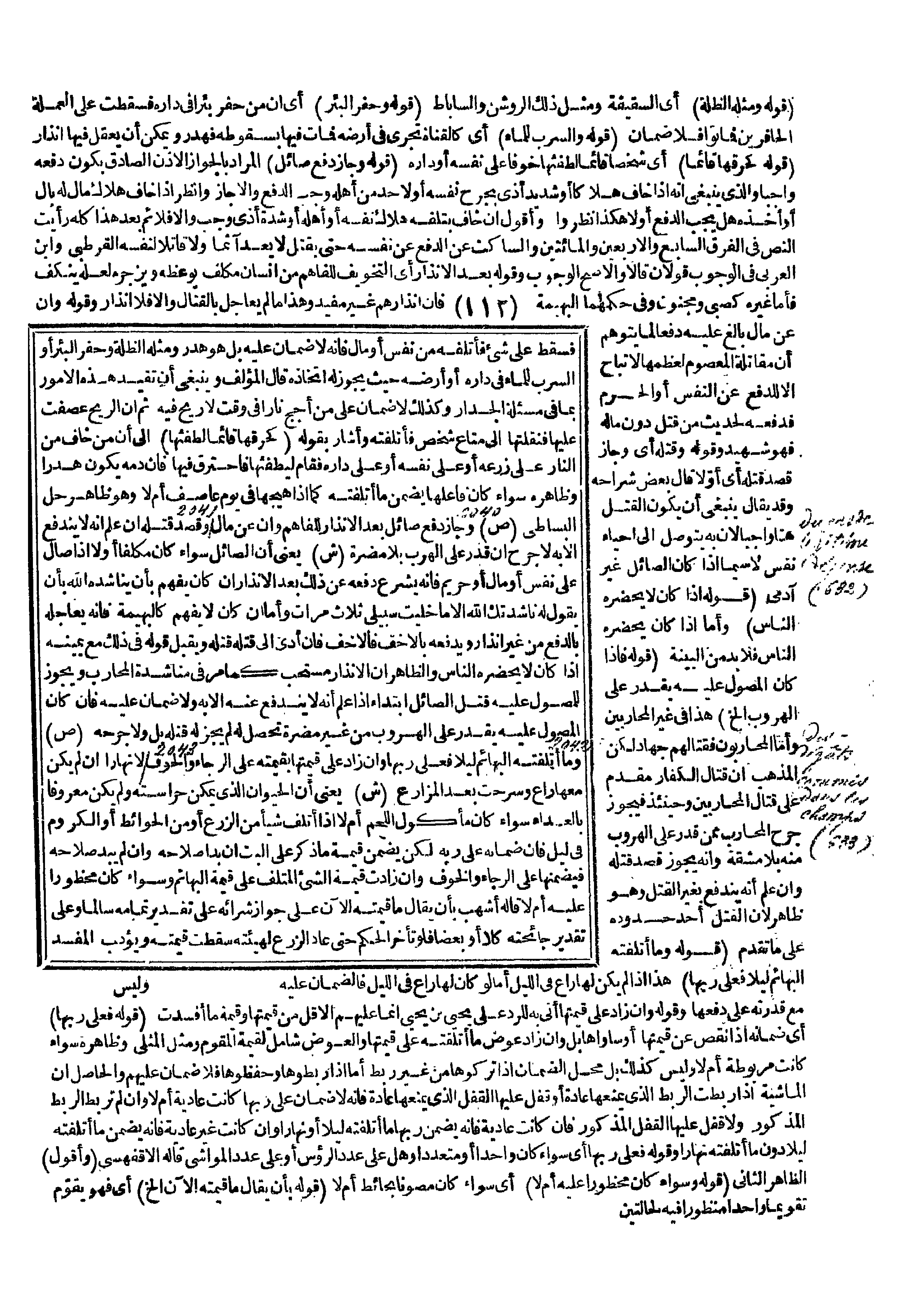 . (قَوْلُهُ: وَجَازَ دَفْعُ صَائِلٍ) الْمُرَادُ بِالْجَوَازِ الْإِذْنُ الصَّادِقُ بِكَوْنِ دَفْعِهِ وَاجِبًا وَاَلَّذِي يَنْبَغِي أَنَّهُ إذَا خَافَ هَلَاكًا أَوْ شَدِيدَ أَذًى بِجُرْحِ نَفْسِهِ أَوْ لِأَحَدٍ مِنْ أَهْلِهِ وَجَبَ الدَّفْعُ وَإِلَّا جَازَ وَانْظُرْ إذَا خَافَ هَلَاكَ مَالٍ لَهُ بَالٌ أَوْ أَخَذَهُ هَلْ يَجِبُ الدَّفْعُ أَوْ لَا هَكَذَا نَظَرُوا وَأَقُولُ إنْ خَافَ بِتَلَفِهِ هَلَاكَ نَفْسِهِ أَوْ أَهْلِهِ أَوْ شِدَّةَ أَذًى وَجَبَ وَإِلَّا فَلَا ثُمَّ بَعْدَ هَذَا كُلِّهِ رَأَيْتُ النَّصَّ فِي الْفَرْقِ السَّابِعِ وَالْأَرْبَعِينَ وَالْمِائَتَيْنِ وَالسَّاكِتُ عَنْ الدَّفْعِ عَنْ نَفْسِهِ حَتَّى يُقْتَلَ لَا يُعَدُّ آثِمًا وَلَا قَاتِلًا لِنَفْسِهِ الْقُرْطُبِيُّ وَابْنُ الْعَرَبِيِّ فِي الْوُجُوبِ قَوْلَانِ قَالَا وَالْأَصَحُّ الْوُجُوبُ وَقَوْلُهُ بَعْدَ الْإِنْذَارِ أَيْ التَّخْوِيفِ لِلْفَاهِمِ مِنْ إنْسَانٍ مُكَلَّفٍ يُوعِظُهُ وَيَزْجُرُهُ لَعَلَّهُ يَنْكَفُّ فَأَمَّا غَيْرُهُ كَصَبِيٍّ وَمَجْنُونٍ وَفِي حُكْمِهِمَا الْبَهِيمَةُ فَإِنَّ إنْذَارَهُمْ غَيْرُ مُفِيدٍ وَهَذَا مَا لَمْ يُعَاجِلْ بِالْقِتَالِ وَإِلَّا فَلَا إنْذَارَ وَقَوْلُهُ وَإِنْ عَنْ مَالٍ بَالِغٍ عَلَيْهِ دَفْعًا لِمَا يُتَوَهَّمُ أَنَّ مُقَاتَلَةَ الْمَعْصُومِ لِعِظَمِهَا لَا تُبَاحُ إلَّا لِلدَّفْعِ عَنْ النَّفْسِ أَوْ الْحَرَمِ فَدَفَعَهُ لِحَدِيثِ «مَنْ قُتِلَ دُونَ مَالِهِ فَهُوَ شَهِيدٌ» وَقَوْلُهُ وَقَتْلِهِ أَيْ وَجَازَ قَصْدُ قَتْلِهِ أَيْ أَوَّلًا قَالَ بَعْضُ شُرَّاحِهِ وَقَدْ يُقَالُ يَنْبَغِي أَنْ يَكُونَ الْقَتْلُ هُنَا وَاجِبًا لِأَنَّ بِهِ يُتَوَصَّلُ إلَى إحْيَاءِ نَفْسٍ لَا سِيَّمَا إذَا كَانَ الصَّائِلُ غَيْرَ آدَمِيٍّ.