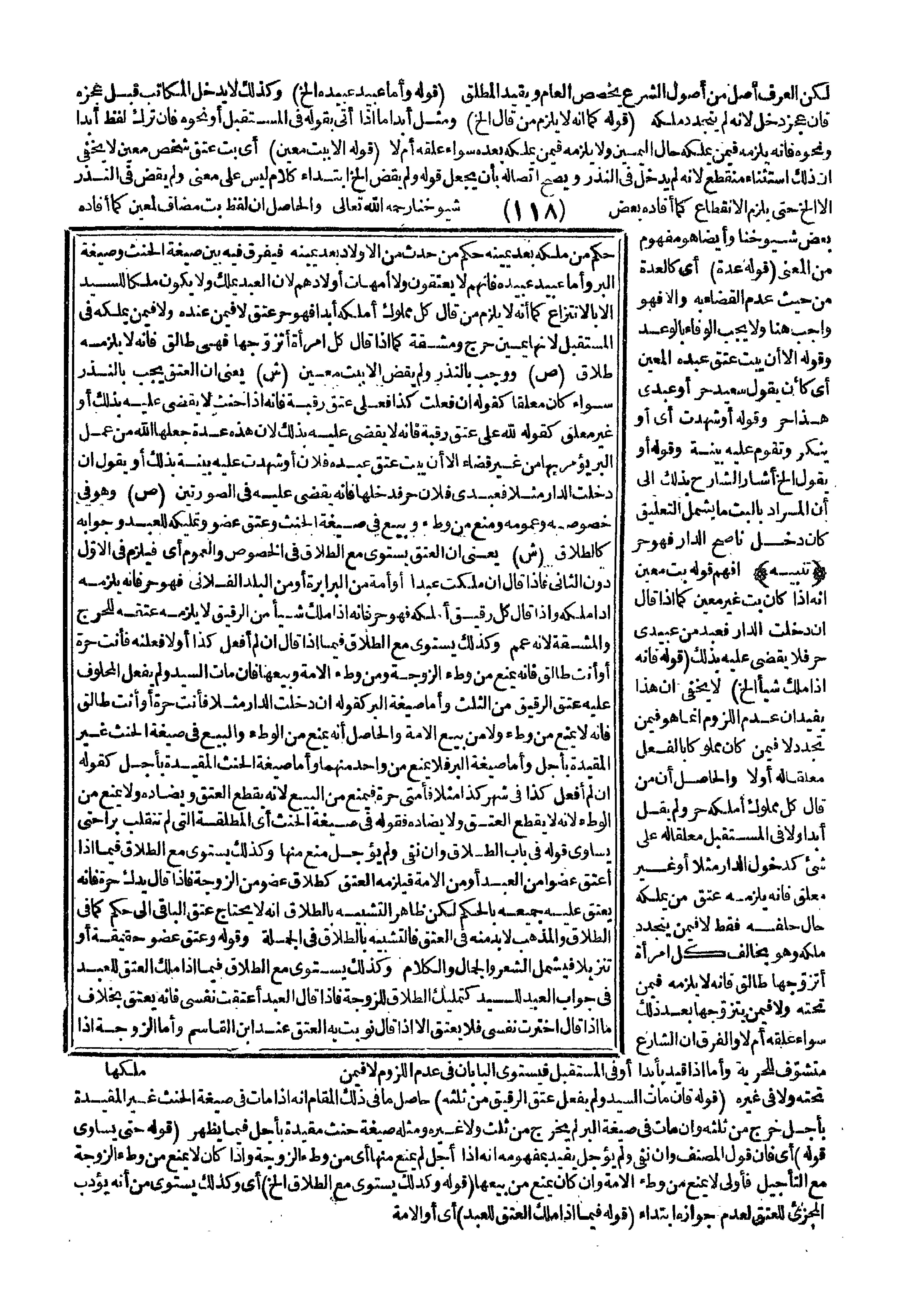ـــــــــــــــــــــــــــــQلَكِنْ الْعُرْفُ أَصْلٌ مِنْ أُصُولِ الشَّرْعِ يُخَصِّصُ الْعَامَّ وَيُقَيِّدُ الْمُطْلَقَ (قَوْلُهُ وَأَمَّا عَبِيدُ عَبِيدِهِ إلَخْ) وَكَذَلِكَ لَا يَدْخُلُ قَبْلَ عَجْزِهِ فَإِنْ عَجَزَ دَخَلَ لِأَنَّهُ لَمْ يَتَجَدَّدْ مِلْكُهُ (قَوْلُهُ كَمَا أَنَّهُ لَا يَلْزَمُ مَنْ قَالَ إلَخْ) وَمِثْلُ أَبَدًا مَا إذَا أَتَى بِقَوْلٍ فِي الْمُسْتَقْبَلِ أَوْ نَحْوِهِ فَإِنْ تَرَكَ لَفْظَ أَبَدًا وَنَحْوَهُ فَإِنَّهُ يَلْزَمُهُ فِيمَنْ يَمْلِكُهُ حَالَ الْيَمِينِ وَلَا يَلْزَمُهُ فِيمَنْ يَمْلِكُهُ بَعْدَهُ سَوَاءٌ عَلَّقَهُ أَمْ لَا