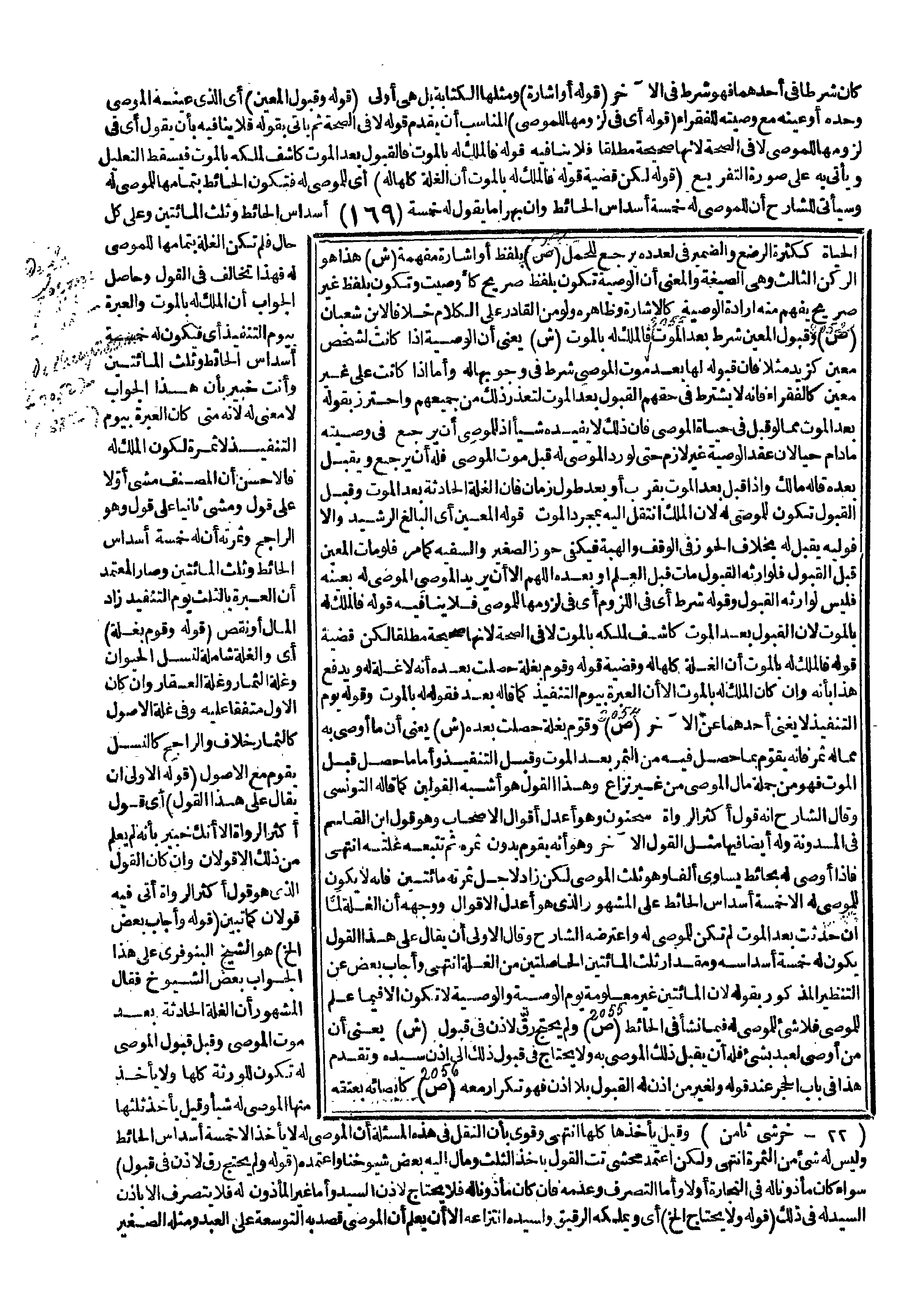 (قَوْلُهُ أَوْ إشَارَةٌ) وَمِثْلُهَا الْكِتَابَةُ هِيَ أَوْلَى (قَوْلُهُ وَقَبُولُ الْمُعَيَّنِ) أَيْ الَّذِي عَيَّنَهُ الْمُوصِي وَحْدَهُ أَوْ عَيَّنَهُ مَعَ وَصِيَّتِهِ لِلْفُقَرَاءِ (قَوْلُهُ أَيْ فِي لُزُومِهَا لِلْمُوصِي) الْمُنَاسِبُ أَنْ يُقَدِّمَ قَوْلَهُ لَا فِي الصِّحَّةِ ثُمَّ يَأْتِيَ بِقَوْلِهِ فَلَا يُنَافِيهِ بِأَنْ يَقُولَ أَيْ فِي لُزُومِهَا لِلْمُوصِي لَا فِي الصِّحَّةِ لِأَنَّهَا صَحِيحَةٌ مُطْلَقًا فَلَا يُنَافِيهِ قَوْلُهُ فَالْمِلْكُ لَهُ بِالْمَوْتِ فَالْقَبُولُ بَعْدَ الْمَوْتِ كَاشِفٌ لِمِلْكِهِ بِالْمَوْتِ فَيَسْقُطُ التَّعْلِيلُ وَيَأْتِي بِهِ عَلَى صُورَةِ التَّفْرِيعِ (قَوْلُهُ لَكِنَّ قَضِيَّةَ قَوْلِهِ فَالْمِلْكُ لَهُ بِالْمَوْتِ أَنَّ الْغَلَّةَ كُلَّهَا لَهُ) أَيْ لِلْمُوصَى لَهُ فَتَكُونُ الْحَائِطُ بِتَمَامِهَا لِلْمُوصَى لَهُ وَسَيَأْتِي لِلشَّارِحِ أَنَّ لِلْمُوصَى لَهُ خَمْسَةَ أَسْدَاسِ الْحَائِطِ وَأَنَّ بَهْرَامَ يَقُولُ لَهُ خَمْسَةُ أَسْدَاسِ الْحَائِطِ وَثُلُثُ الْمِائَتَيْنِ وَعَلَى كُلِّ حَالٍ فَلَمْ تَكُنْ الْغَلَّةُ بِتَمَامِهَا لِلْمُوصَى لَهُ فَهَذَا تَخَالُفٌ فِي الْقَوْلِ وَحَاصِلُ الْجَوَابِ أَنَّ الْمِلْكَ لَهُ بِالْمَوْتِ وَالْعِبْرَةُ بِيَوْمِ التَّنْفِيذِ أَيْ فَيَكُونُ لَهُ خَمْسَةُ أَسْدَاسِ الْحَائِطِ وَثُلُثُ الْمِائَتَيْنِ وَأَنْتَ خَبِيرٌ بِأَنَّ هَذَا الْجَوَابَ لَا مَعْنَى لَهُ لِأَنَّهُ مَتَى كَانَ الْعِبْرَةُ بِيَوْمِ التَّنْفِيذِ لَا ثَمَرَةَ لِكَوْنِ الْمِلْكِ لَهُ فَالْأَحْسَنُ أَنَّ الْمُصَنِّفَ مَشَى أَوَّلًا عَلَى قَوْلٍ وَمَشَى ثَانِيًا عَلَى قَوْلٍ وَهُوَ الرَّاجِحُ وَثَمَرَتُهُ أَنَّ لَهُ خَمْسَةَ أَسْدَاسِ الْحَائِطِ وَثُلُثَ الْمِائَتَيْنِ وَصَارَ الْمُعْتَمَدُ أَنَّ الْعِبْرَةَ بِالثُّلُثِ يَوْمَ التَّنْفِيذِ زَادَ الْمَالُ أَوْ نَقَصَ