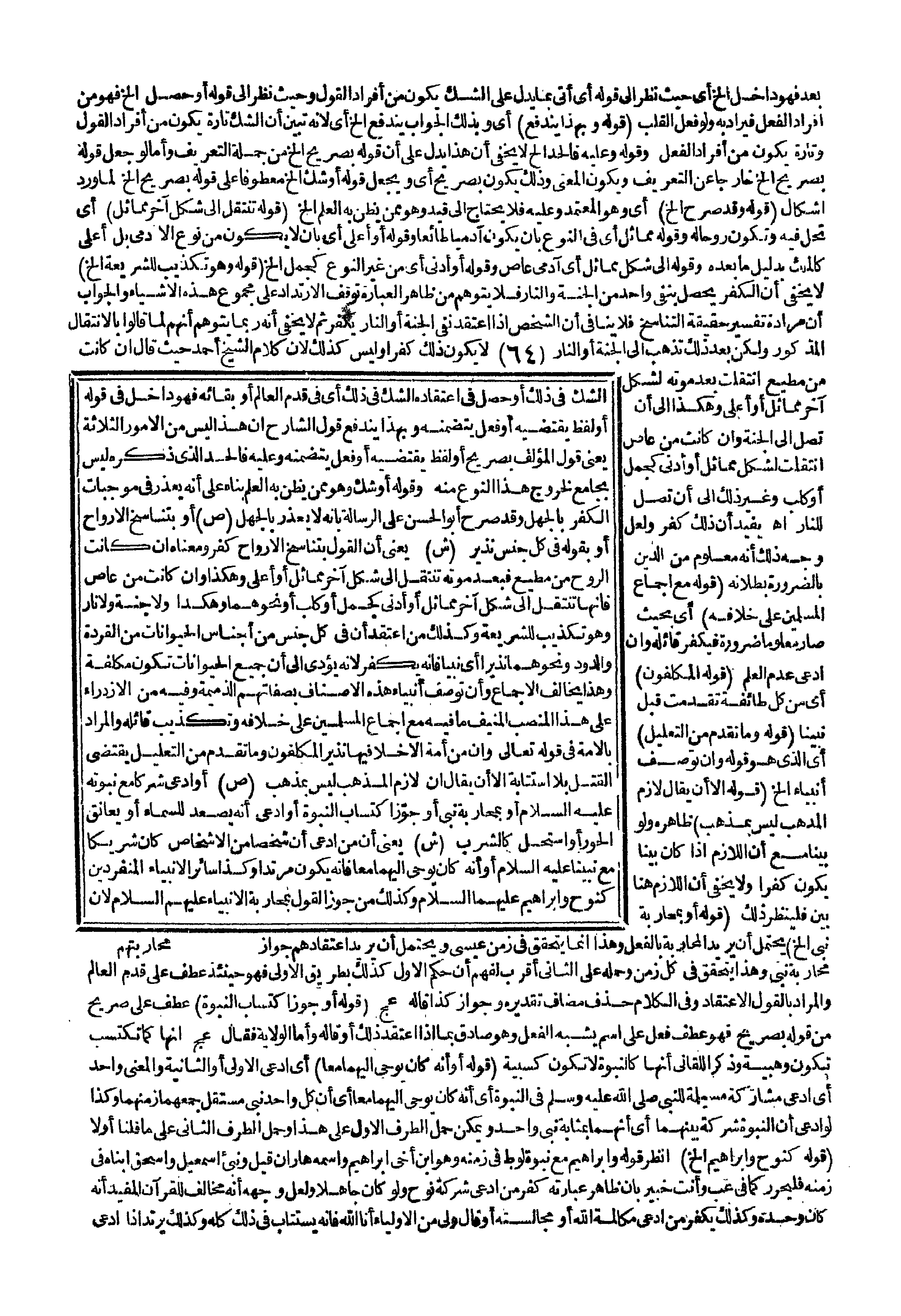 يُفِيدُ أَنَّ ذَلِكَ كُفْرٌ، وَلَعَلَّ وَجْهَ ذَلِكَ أَنَّهُ مَعْلُومٌ مِنْ الدِّينِ بِالضَّرُورَةِ بُطْلَانُهُ. (قَوْلُهُ: مَعَ إجْمَاعِ الْمُسْلِمِينَ عَلَى خِلَافِهِ) أَيْ: بِحَيْثُ صَارَ مَعْلُومًا ضَرُورَةً فَيَكْفُرُ قَائِلُهُ وَإِنْ ادَّعَى عَدَمَ الْعِلْمِ. (قَوْلُهُ: الْمُكَلَّفُونَ) أَيْ: مِنْ كُلِّ طَائِفَةٍ تَقَدَّمَتْ قَبْلَ نَبِيِّنَا. (قَوْلُهُ: وَمَا تَقَدَّمَ مِنْ التَّعْلِيلِ) أَيْ: الَّذِي هُوَ قَوْلُهُ: وَأَنْ تُوصَفَ أَنْبِيَاءٌ إلَخْ. (قَوْلُهُ: إلَّا أَنْ يُقَالَ: لَازِمُ الْمَذْهَبِ لَيْسَ بِمَذْهَبٍ) ظَاهِرُهُ وَلَوْ بَيَّنَّا مَعَ أَنَّ اللَّازِمَ إذَا كَانَ بَيِّنًا يَكُونُ كُفْرًا، وَلَا يَخْفَى أَنَّ اللَّازِمَ هُنَا بَيِّنٌ فَلْيُنْظَرْ ذَلِكَ