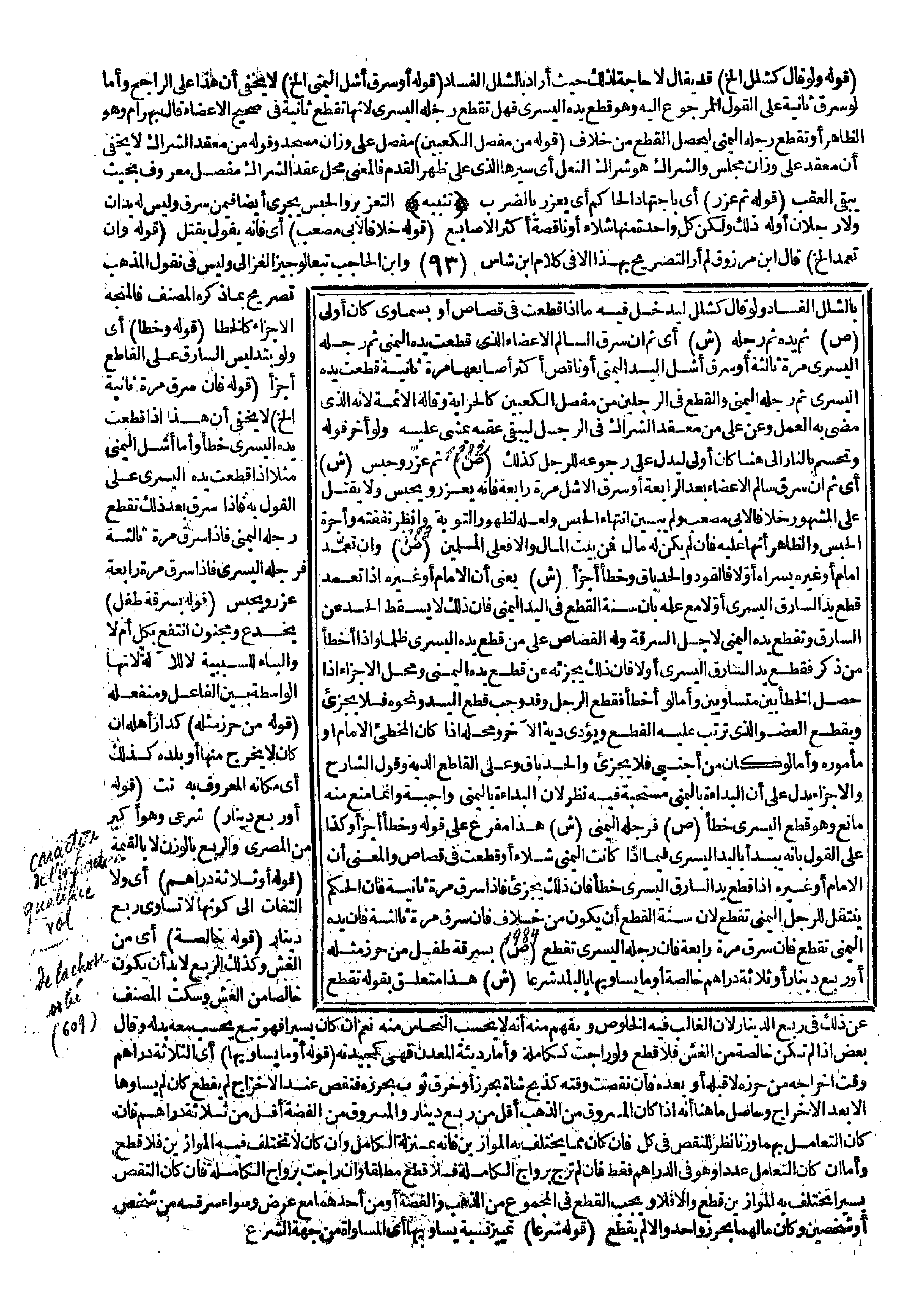 (تَنْبِيهٌ) : التَّعْزِيرُ وَالْحَبْسُ يَجْرِي أَيْضًا فِيمَنْ سَرَقَ وَلَيْسَ لَهُ يَدَانِ وَلَا رِجْلَانِ أَوَّله ذَلِكَ، وَلَكِنَّ كُلَّ وَاحِدَةٍ مِنْهَا شَلَّاءُ، أَوْ نَاقِصَةُ أَكْثَرِ الْأَصَابِعِ. (قَوْلُهُ: خِلَافًا لِأَبِي مُصْعَبٍ) أَيْ: فَإِنَّهُ يَقُولُ: يُقْتَلُ