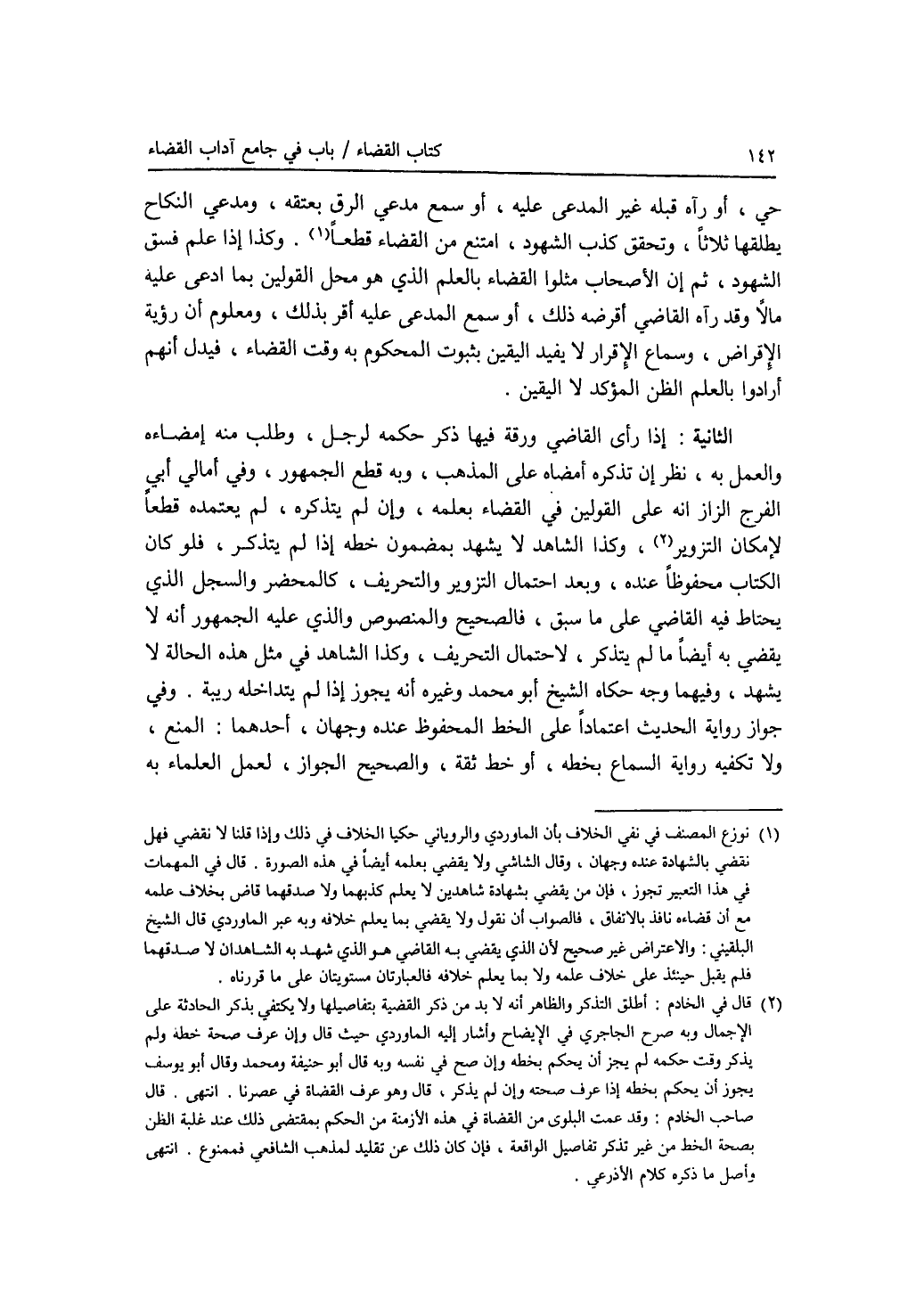 حي، أو رآه قبله غير المدعى عليه، أو سمع مدعي الرق بعتقه، ومدعي النكاح يطلقها ثلاثا، وتحقق كذب الشهود، امتنع من القضاء قطعا. وكذا إذا علم فسق الشهود، ثم إن الاصحاب مثلوا القضاء بالعلم الذي هو محل القولين بما ادعى عليه مالا وقد رآه القاضي أقرضه ذلك، أو سمع المدعى عليه أقر بذلك، ومعلوم أن رؤية الاقراض، وسماع الاقرار لا يفيد اليقين بثبوت المحكوم به وقت القضاء، فيدل أنهم أرادوا بالعلم الظن المؤكد لا اليقين. الثانية: إذا رأى القاضي ورقة فيها ذكر حكمه لرجل، وطلب منه إمضاءه والعمل به، نظر إن تذكره أمضاه على المذهب، وبه قطع الجمهور، وفي أمالي أبي، الفرج الزاز إنه على القولين في القضاء بعلمه وإن لم يتذكره، لم يعتمده قطعا لامكان التزوير، وكذا الشاهد لا يشهد بمضمون خطه إذا لم يتذكر، فلو كان الكتاب محفوظا عنده، وبعد احتمال التزوير والتحريف، كالمحضر والسجل الذي يحتاط فيه القاضي على ما سبق، فالصحيح والمنصوص والذي عليه الجمهور أنه لا يقضي به أيضا ما لم يتذكر، لاحتمال التحريف، وكذا الشاهد في مثل هذه الحالة لا يشهد، وفيهما وجه حكاه الشيخ أبو محمد وغيره أنه يجوز إذا لم يتداخله ريبة. وفي جواز رواية الحديث اعتمادا على الخط المحفوظ عنده وجهان، أحدهما: المنع، ولا تكفيه رواية السماع بخطه أو خط ثقة، والصحيح الجواز، لعمل العلماء به