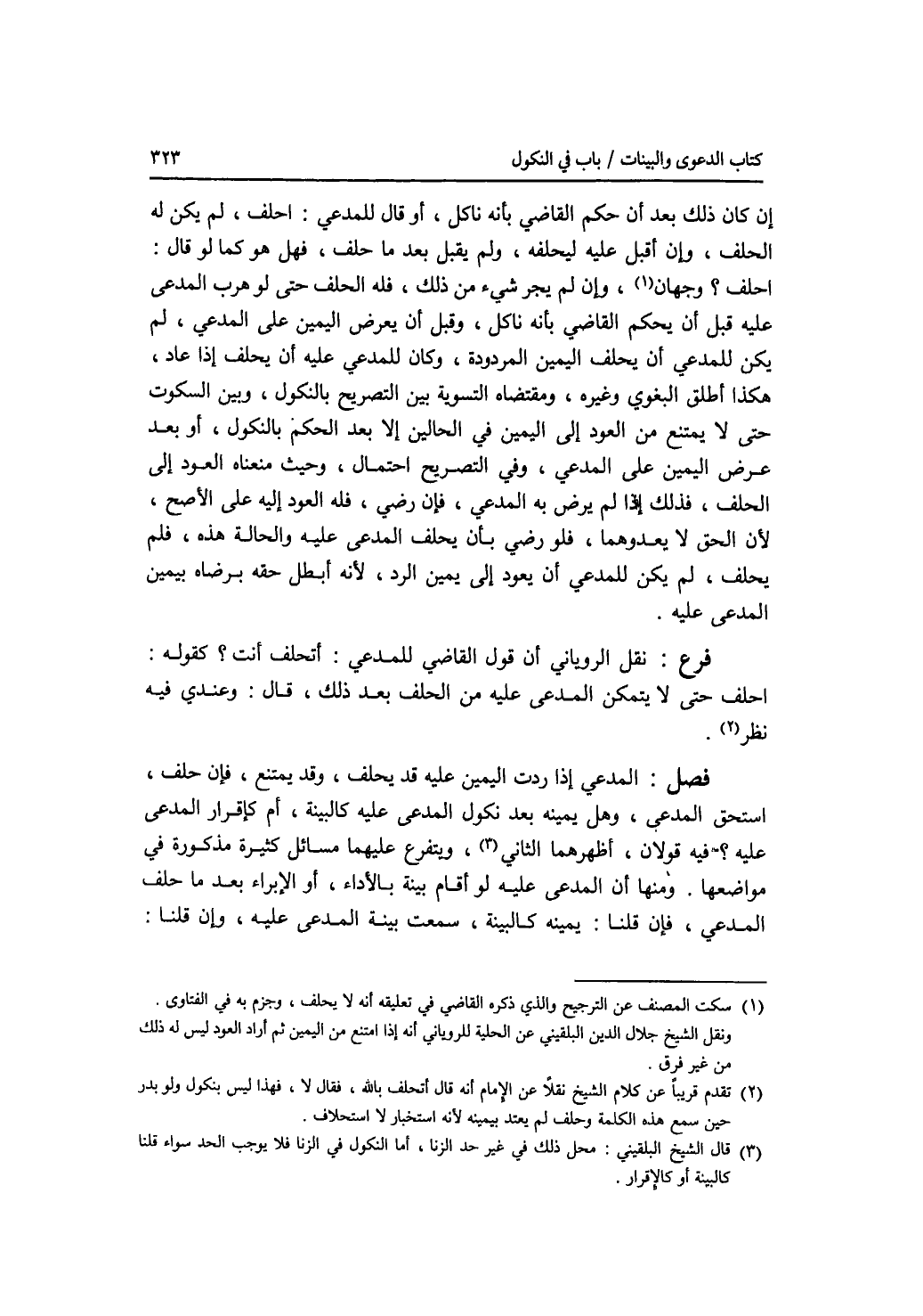 إن كان ذلك بعد أن حكم القاضي بأنه ناكل، أو قال للمدعي: احلف، لم يكن له الحلف، وإن أقبل عليه ليحلفه، ولم يقبل بعد ما حلف، فهل هو كما لو قال: احلف ؟ وجهان، وإن لم يجر شئ من ذلك، فله الحلف حتى لو هرب المدعى عليه قبل أن يحكم القاضي بأنه ناكل، وقبل أن يعرض اليمين على المدعي، لم يكن للمدعى أن يحلف اليمين المردودة، وكان للمدعى عليه أن يحلف إذا عاد، هكذا أطلق البغوي وغيره، ومقتضاه التسوية بين التصريح بالنكول، وبين السكوت حتى لا يمتنع من العود إلى اليمين في الحالين إلا بعد الحكم بالنكول، أو بعد عرض اليمين على المدعي، وفي التصريح احتمال، وحيث منعناه العود إلى الحلف، فذلك إذا لم يرض به المدعي، فإن رضي، فله العود إليه على الاصح، لان الحق لا يعدوهما، فلو رضي بأن يحلف المدعى عليه والحالة هذه، فلم يحلف، لم يكن للمدعي أن يعود إلى يمين، الرد، لانه أبطل حقه برضاه بيمين المدعى عليه. فرع نقل الروياني أن قول القاضي للمدعي: أتحلف أنت ؟ كقوله: احلف حتى لا يتمكن المدعى عليه من الحلف بعد ذلك، قال: وعندي فيه نظر. فصل المدعي إذا ردت اليمين عليه قد يحلف، وقد يمتنع، فإن حلف، استحق المدعى، وهل يمينه بعد نكول المدعى عليه كالبينة، أم كإقرار المدعى عليه ؟ فيه قولان، أظهرهما الثاني، ويتفرع عليهما مسائل كثيرة مذكورة في مواضعها. ومنها أن المدعى عليه لو أقام بينة بالاداء، أو الابراء بعد ما حلف المدعي، فإن قلنا: يمينه كالبينة، سمعت بينة المدعى عليه، وإن قلنا: