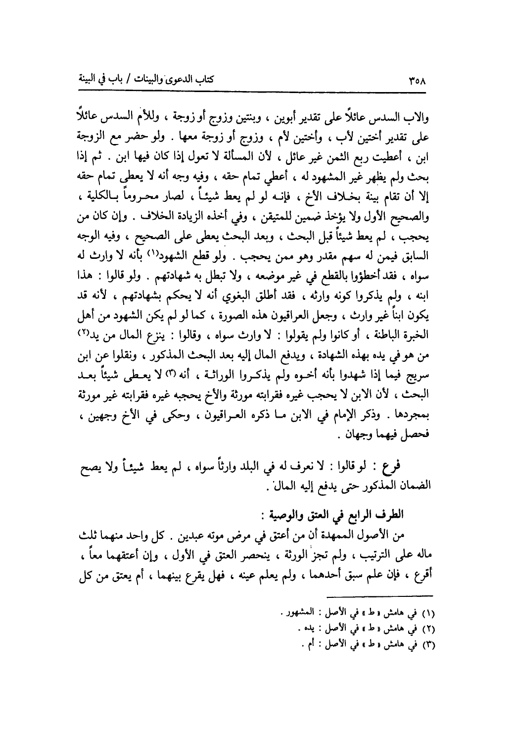الطرف الرابع : في العتق والوصية من الاصول الممهدة أن من أعتق في مرض موته عبدين. كل واحد منهما ثلث ماله على الترتيب، ولم تجز الورثة، ينحصر العتق في الاول، وإن أعتقهما معا، وأقرع، فإن علم سبق أحدهما، ولم يعلم عينه، فهل يقرع بينهما، أم يعتق من كل