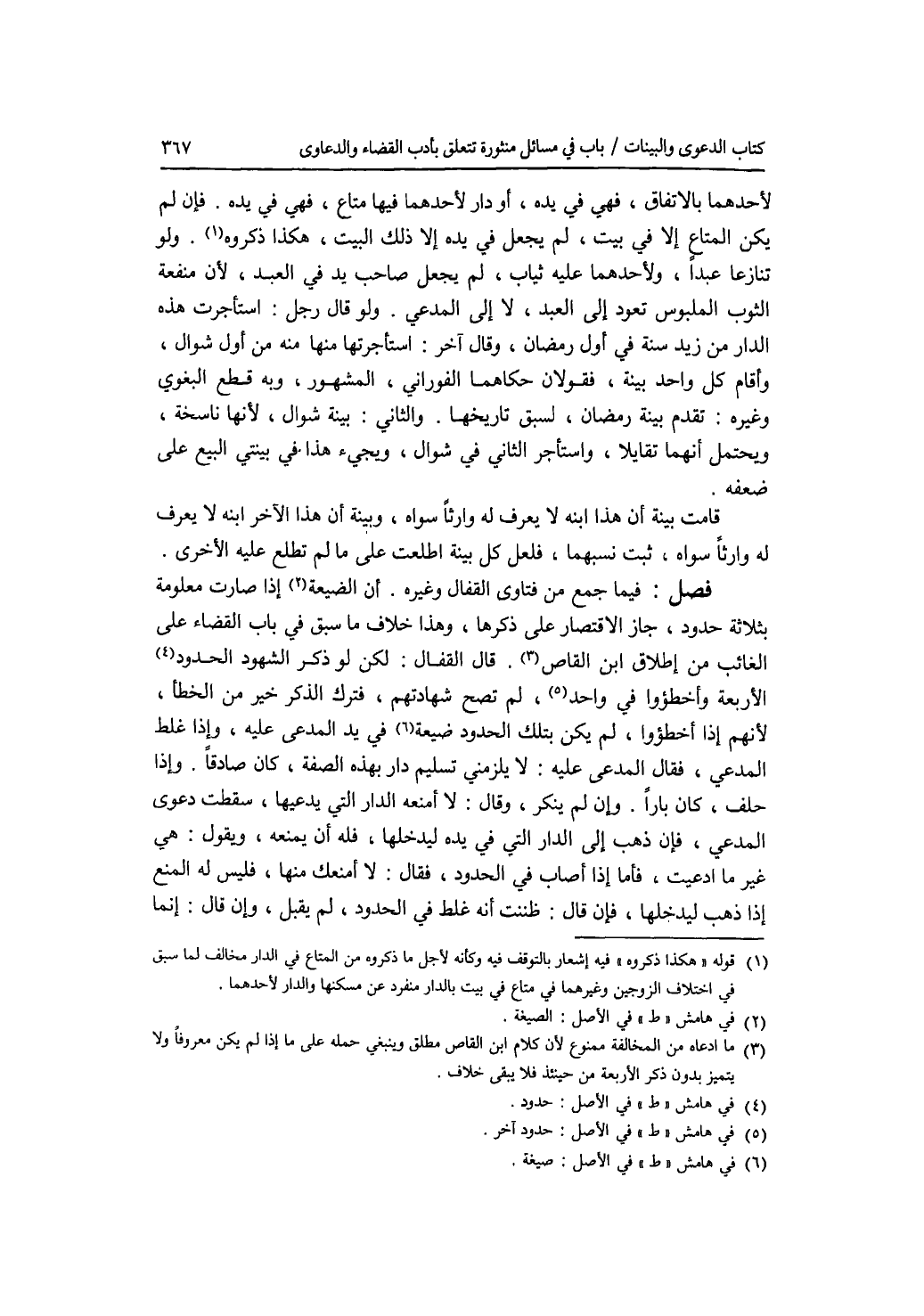 لاحدهما بالاتفاق، فهي في يده، أو دار لاحدهما فيها متاع، فهي في يده. فإن لم يكن المتاع إلا في بيت، لم يجعل في يده إلا ذلك البيت، هكذا ذكروه. ولو تنازعا عبدا، ولاحدهما عليه ثياب، لم يجعل صاحب يد في العبد، لان منفعة الثوب الملبوس تعود إلى العبد، لا إلى المدعي. ولو قال رجل: استأجرت هذه الدار من زيد سنة في أول رمضان، وقال آخر: استأجرتها منه سنة من أول شوال، وأقام كل واحد بينة، فقولان حكاهما الفوراني، المشهور، وبه قطع البغوي وغيره: تقدم بينة رمضان، لسبق تاريخها. والثاني: بينة شوال، لانها ناسخة، ويحتمل أنهما تقايلا، واستأجر الثاني في شوال، ويجئ هذا في بينتي البيع على ضعفه. قامت بينة أن هذا ابنه لا يعرف له وارثا سواه، وبينة أن هذا الآخر ابنه لا يعرف له وارثا سواه، ثبت نسبهما، فلعل كل بينة اطلعت على ما لم تطلع عليه الاخرى. فصل فيما جمع من فتاوى القفال وغيره. ان الضيعة إذا صارت معلومة بثلاثة حدود، جاز الاقتصار على ذكرها، وهذا خلاف ما سبق في باب القضاء على الغائب من إطلاق ابن القاص. قال القفال: لكن لو ذكر الشهود الحدود الاربعة وأخطؤوا في واحد، لم تصح شهادتهم، فترك الذكر خير من الخطأ، لانهم إذا أخطؤوا، لم يكن بتلك الحدود ضيعة في يد المدعى عليه، وإذا غلط المدعي، فقال المدعى عليه: لا. يلزمني تسليم دار بهذه الصفة، كان صادقا. وإذا حلف، كان بارا. وإن لم ينكر، وقال: لا أمنعه الدار التي يدعيها، سقطت دعوى المدعي، فإن ذهب إلى الدار التي في يده ليدخلها، فله أن يمنعه، ويقول: هي غير ما ادعيت، فأما إذا أصاب في الحدود، فقال: لا أمنعك منها، فليس له المنع إذا ذهب ليدخلها، فإن قال: ظننت أنه غلط في الحدود، لم يقبل، وإن قال: إنما