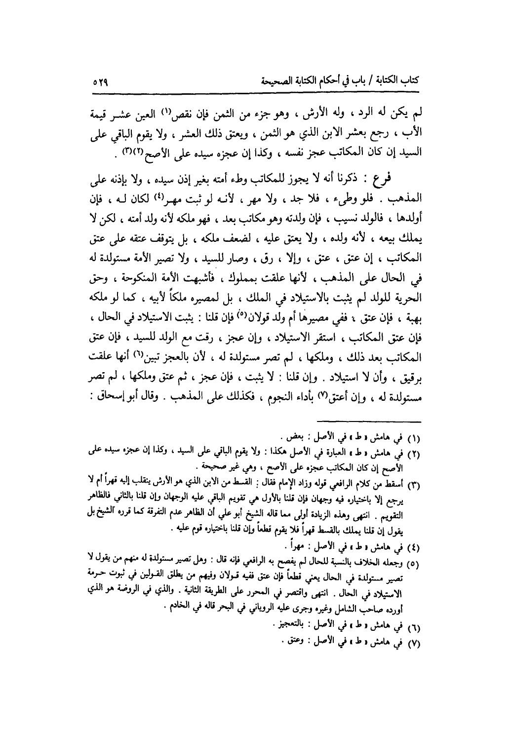 لم يكن له الرد، وله الارش، وهو جزء من الثمن، فإن نقص العين عشر قيمة الاب، رجع بعشر الابن الذي هو الثمن، ويعتق ذلك العشر، ولا يقوم الباقي على السيد إن كان المكاتب عجز نفسه، وكذا إن عجزه سيد على الاصح. فرع ذكرنا أنه لا يجوز للمكاتب وطئ أمته بغير إذن سيده، ولا بإذنه على المذهب. فلو وطئ، فلا حد، ولا مهر، لانه لو ثبت مهر لكان له، فإن أولدها، فالولد نسيب، فإن ولجته وهو مكاتب بعد، فهو ملكه لانه ولد أمته، لكن لا يملك بيعه، لانه ولده، ولا يعتق عليه، لضعف ملكه، بل يتوقف عتقه على عتق المكاتب، إن عتق، عتق، وإلا، رق، وصار للسيد، ولا تصير الامة مستولدة له في الحال على المذهب، لانها علقت بمملوك، فأشبهت الامة المنكوحة، وحق الحرية للولد لم يثبت بالاستيلاد في الملك، بل لمصيره ملكا لابيه، كما لو ملكه بهبة، فإن عتق، ففي مصيرها أم ولد قولان. فإن قلنا: يثبت الاستيلاد في الحال، فإن عتق المكاتب، استقر الاستيلاد، وإن عجز، رقت مع الولد للسيد، فإن عتق المكاتب بعد ذلك، وملكها، لم تصر مستولدة له، لان بالعجزتين انها علقت برقيق، وأن لا استيلاد. وإن قلنا: لا يثبت، فإن عجز، ثم عتق وملكها، لم تصر مستولدة له، وإن أعتق بأداء النجوم، فكذلك على المذهب. وقال أبو إسحق: