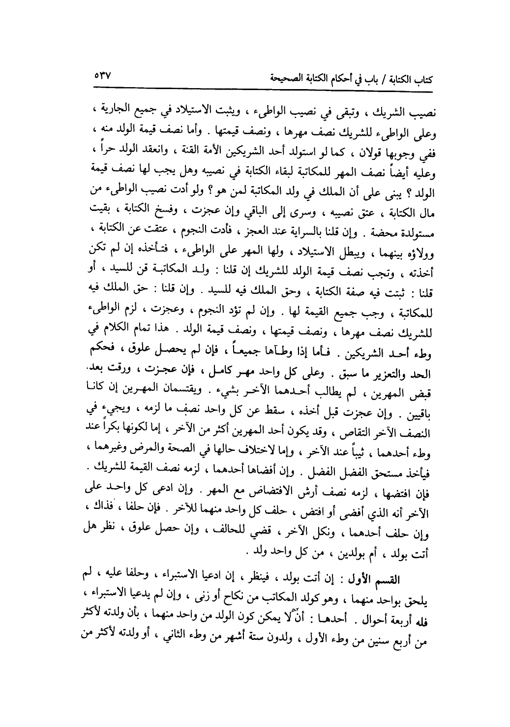 نصيب الشريك، وتبقى في نصيب الواطئ، ويثبت الاستيلاد في جميع الجارية، وعلى الواطئ للشريك نصف مهرها، ونصف قيمتها. وأما نصف قيمة الولد منه، ففي وجوبها قولان، كما لو استولد أحد الشريكين الامة القنة، وانعقد الولد حرا، وعليه أيضا نصف المهر للمكاتبة لبقاء الكتابة في نصيبه، وهل يجب لها نصف قيمة الولد ؟ يبنى على أن الملك في ولد المكاتبة لمن هو ؟ ولو أدت نصيب الواطئ من مال الكتابة، عتق نصيبه، وسرى إلى الباقي وإن عجزت، وفسخ الكتابة، بقيت مستولدة محضة. وإن قلنا بالسراية عن العجز، فأدت النجوم، عتقت عن الكتابة، وولاؤه بينهما، ويبطل الاستيلاد، وله المهر على الواطئ، فتأخذه إن لم تكن أخذته، وتجب نصف قيمة الولد للشريك إقلنا: ولد المكاتبة قن للسيد، أو قلنا: ثبتت فيه صفة الكتابة، وحق الملك فيه للسيد. وإن قلنا: حق الملك فيه للمكاتبة، وجب جميع القيمة لها. وإن لم تؤد النجوم، وعجزت، لزم الواطئ للشريك نصف مهرها، ونصف قيمتها، ونصف قيمة الولد. هذا تمام الكلام في وطئ أحد الشريكين. فأما إذا وطئاها جميعا، فإن لم يحصل علوق، فحكم الحد والتعزير ما سبق. وعلى كل واحد مهر كامل، فإن عجزت، ورقت بعد قبض المهرين، لم يطالب أحدهما الآخر بشئ. ويقتسمان المهرين إن كانا باقيين. وإن عجزت قبل أخذه، سقط عن كل واحد نصف ما لزمه، ويجئ في النصف الآخر التقاص، وقد يكون أحد المهرين أكثر من الآخر، إما لكونها بكرا عند وطئ أحدهما، ثيبا عند الآخر، وإما لاختلاف حالها في الصحة والمرض وغيرهما، فيأخذ مستحق الفضل الفضل. وإن أفضاها أحدهما، لزمه نصف القيمة للشريك. فإن أفتضها، لزمه نصف أرش الافتضاض مع المهر. وإن ادعى كل واحد على الآخر أنه الذي أفضى أو افتض، حلف كل واحد منهما للآخر، فإن حلفا، فذاك، وإن حلف أحداهما، ونكل الآخر، قضي للحالف، وإن حصل علوق، نظر هل أتت بولد، أم بولدين، من كل واحد ولد. القسم الاول: إن أتت بولد، فينظر، إن ادعيا الاستبراء، وحلفا عليه، لم يلحق بواحد منهما، وهو كولد المكاتب من نكاح أو زنى، وإن لم يدعيا الاستبراء، فله أربعة أحوال. أحدهما: أن لا يمكن كون الولد من واحد منهما، بأن ولدته لاكثر من أربع سنين من وطئ الاول، ولدون ستة أشهر من وطئ الثاني، أو ولدته لاكثر من