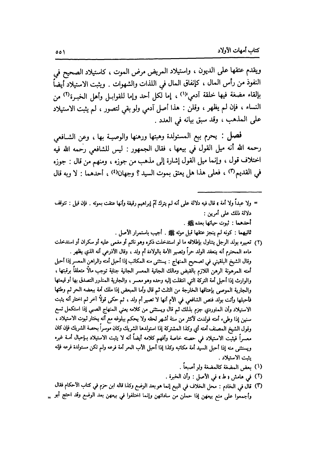 ويقدم عتقها على الديون، واستيلاد المريض مرض الموت، كاستيلاد الصحيح في النفوذ من رأس المال، كإنفاق المال في اللذات والشهوات. ويثبت الاستيلاد أيضا بإلقاء مضغة فيها خلقة آدمي، إما لكل أحد وإما للقوابل وأهل الخبرة من النساء، فإن لم يظهر، وقلن: هذا أصل آدمي ولو بقي لتصور، لم يثبت الاستيلاد على المذهب، وقسبق بيانه في العدد.