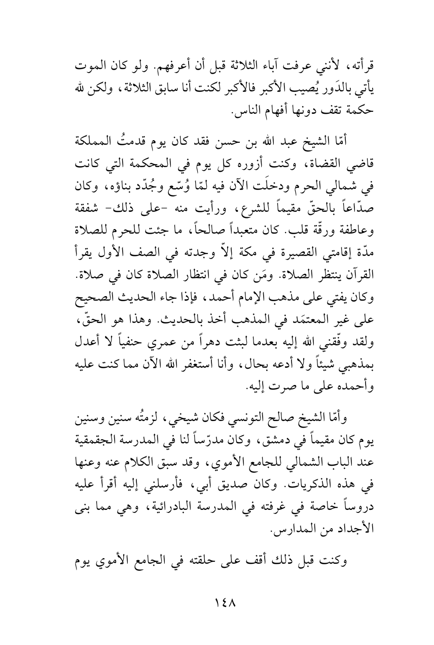 وكنت قبل ذلك أقف على حلقته في الجامع الأموي يوم