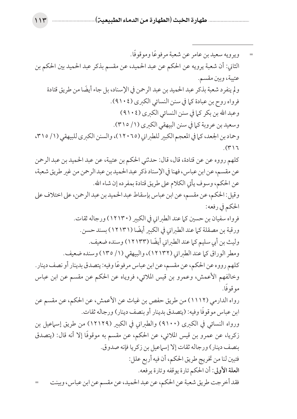 الثاني: أن شعبة يرويه عن الحكم عن عبد الحميد، عن مقسم بذكر عبد الحميد بين الحكم بن عتيبة، وبين مقسم.