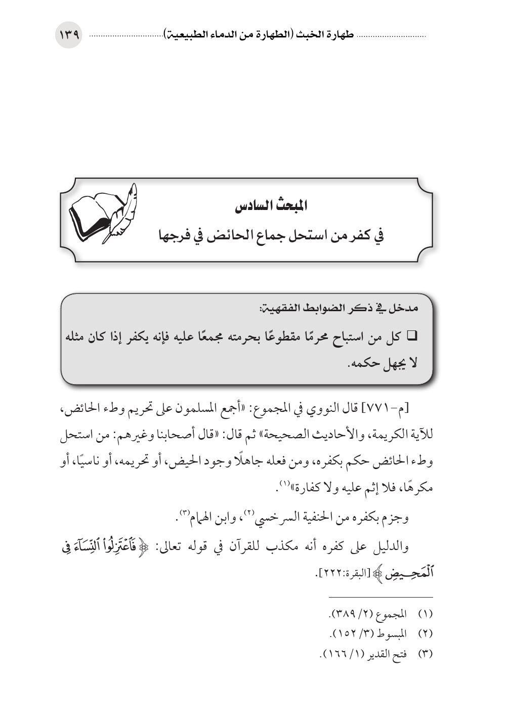 المبحث السادس في كفر من استحل جماع الحائض في فرجها