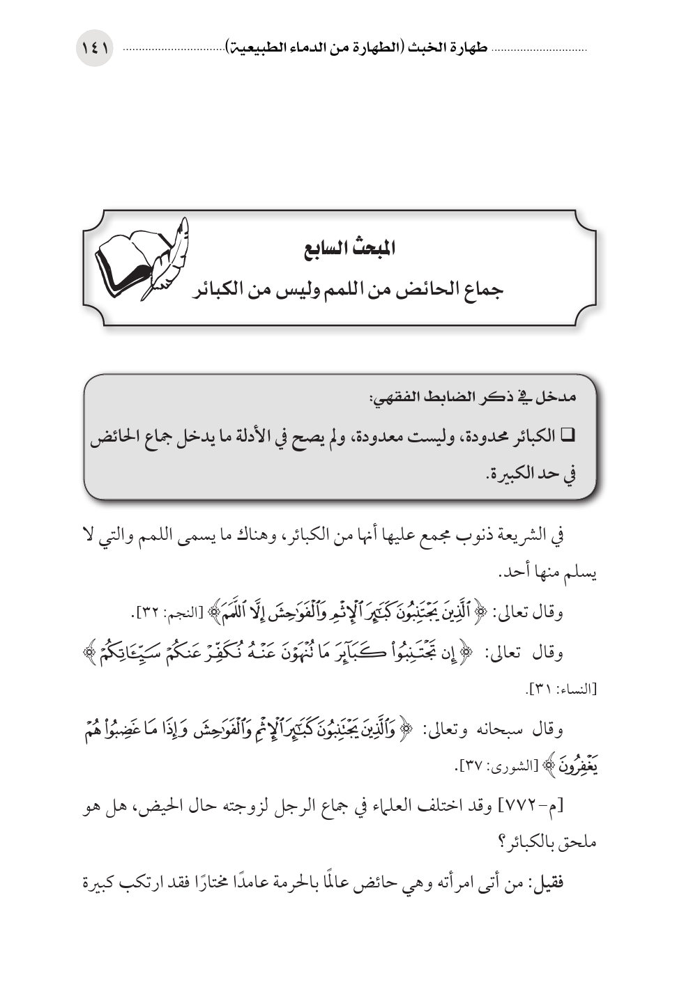 المبحث السابع جماع الحائض من اللمم وليس من الكبائر