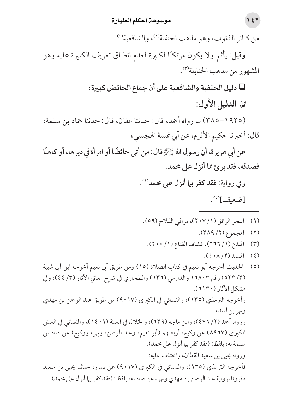 • دليل الحنفية والشافعية على أن جماع الحائض كبيرة: