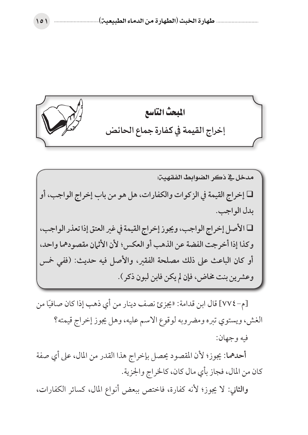 المبحث التاسع إخراج القيمة في كفارة جماع الحائض