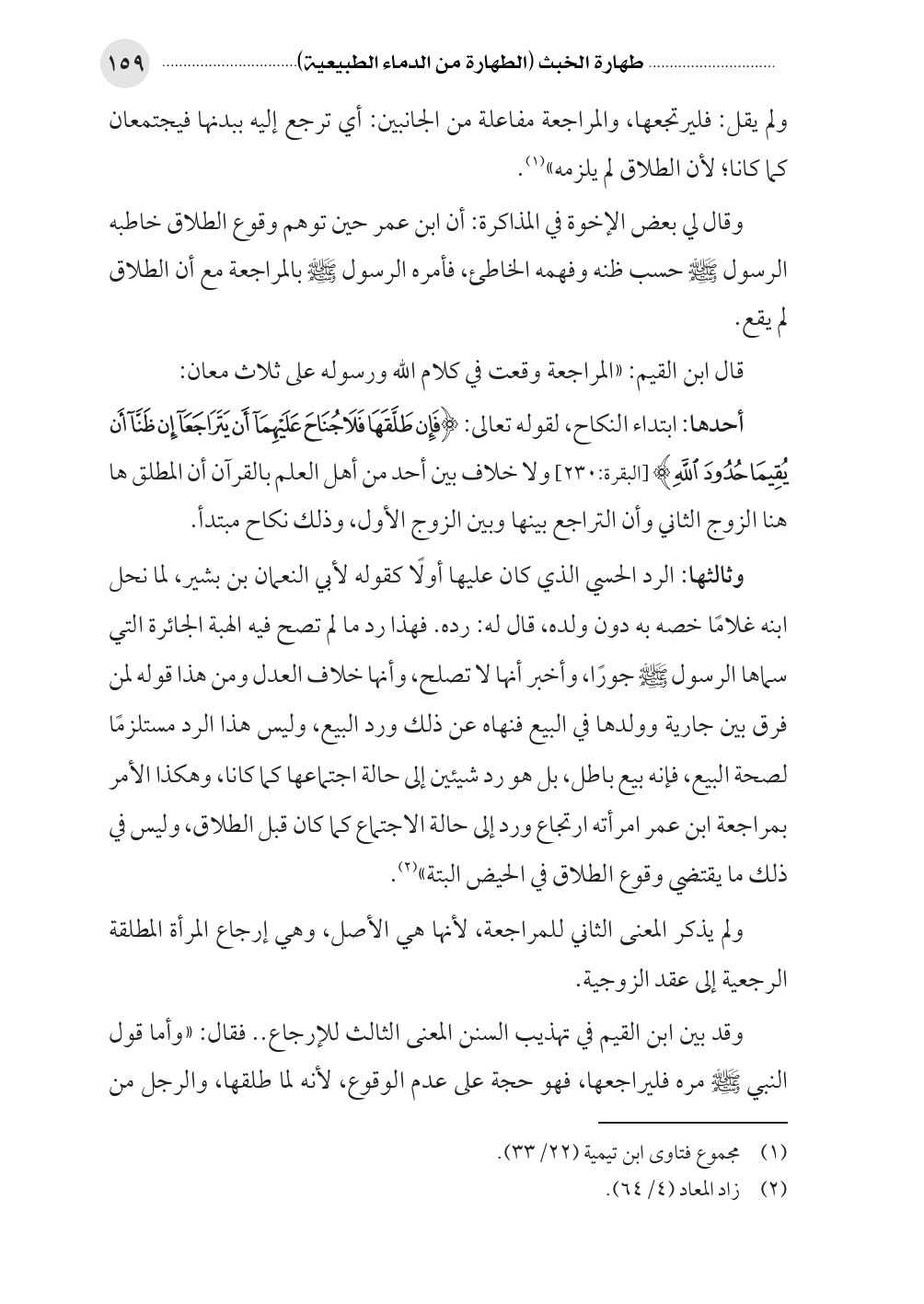 قال ابن القيم: «المراجعة وقعت في كلام الله ورسوله على ثلاث معان: