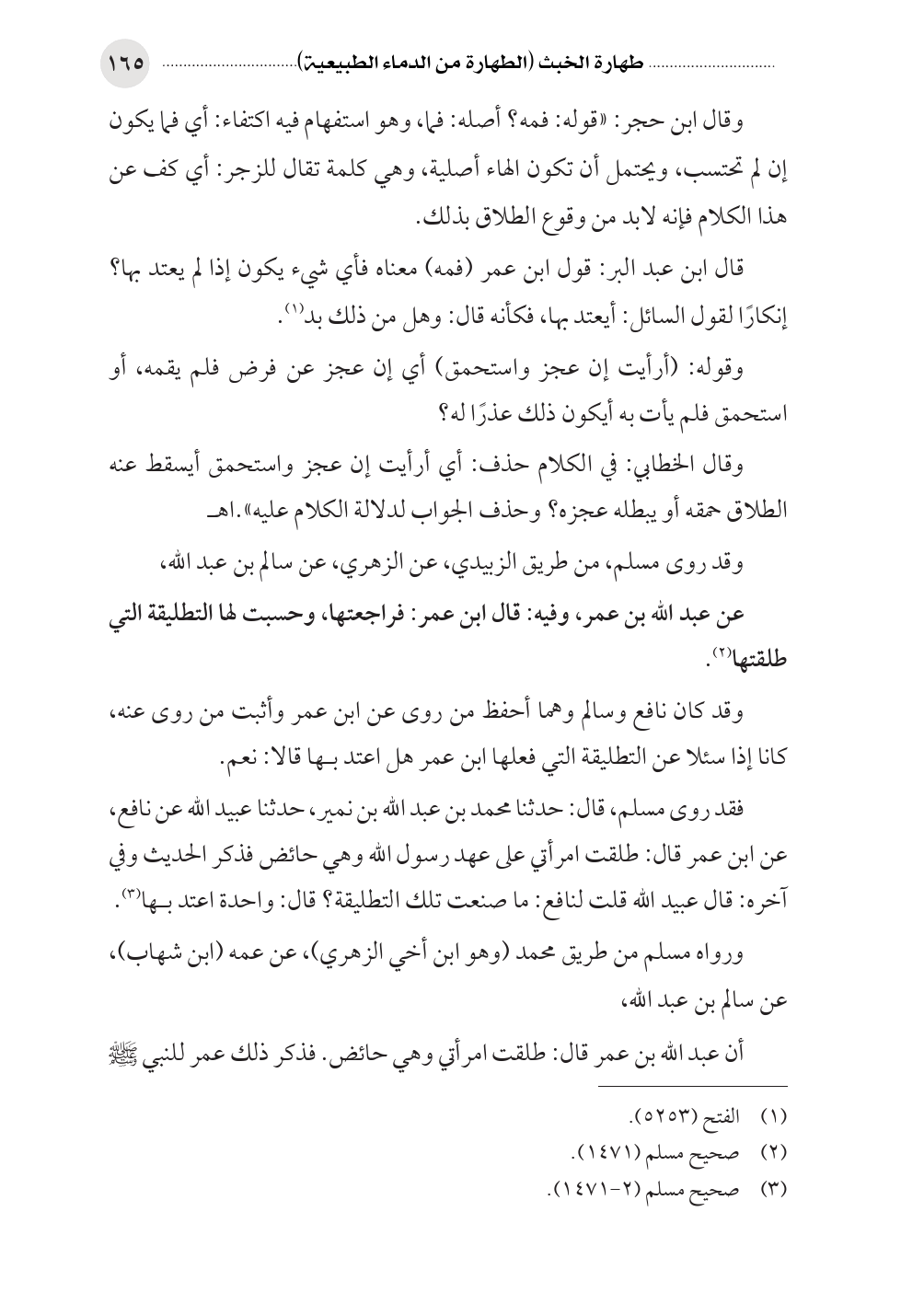 عن عبد الله بن عمر، وفيه: قال ابن عمر: فراجعتها، وحسبت لها التطليقة التي طلقتها (¬٢).