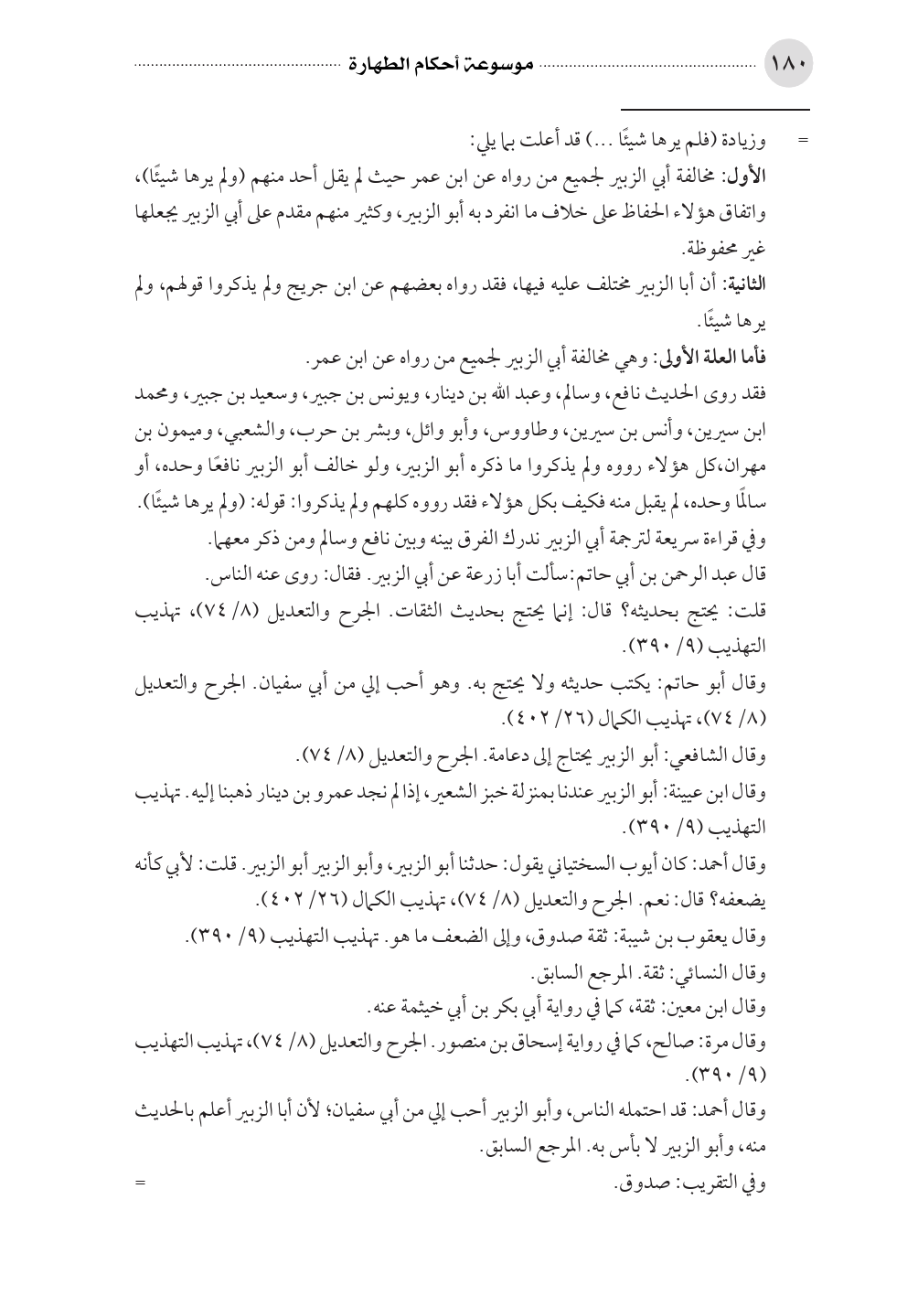 الثانية: أن أبا الزبير مختلف عليه فيها، فقد رواه بعضهم عن ابن جريج ولم يذكروا قولهم، ولم يرها شيئًا.
