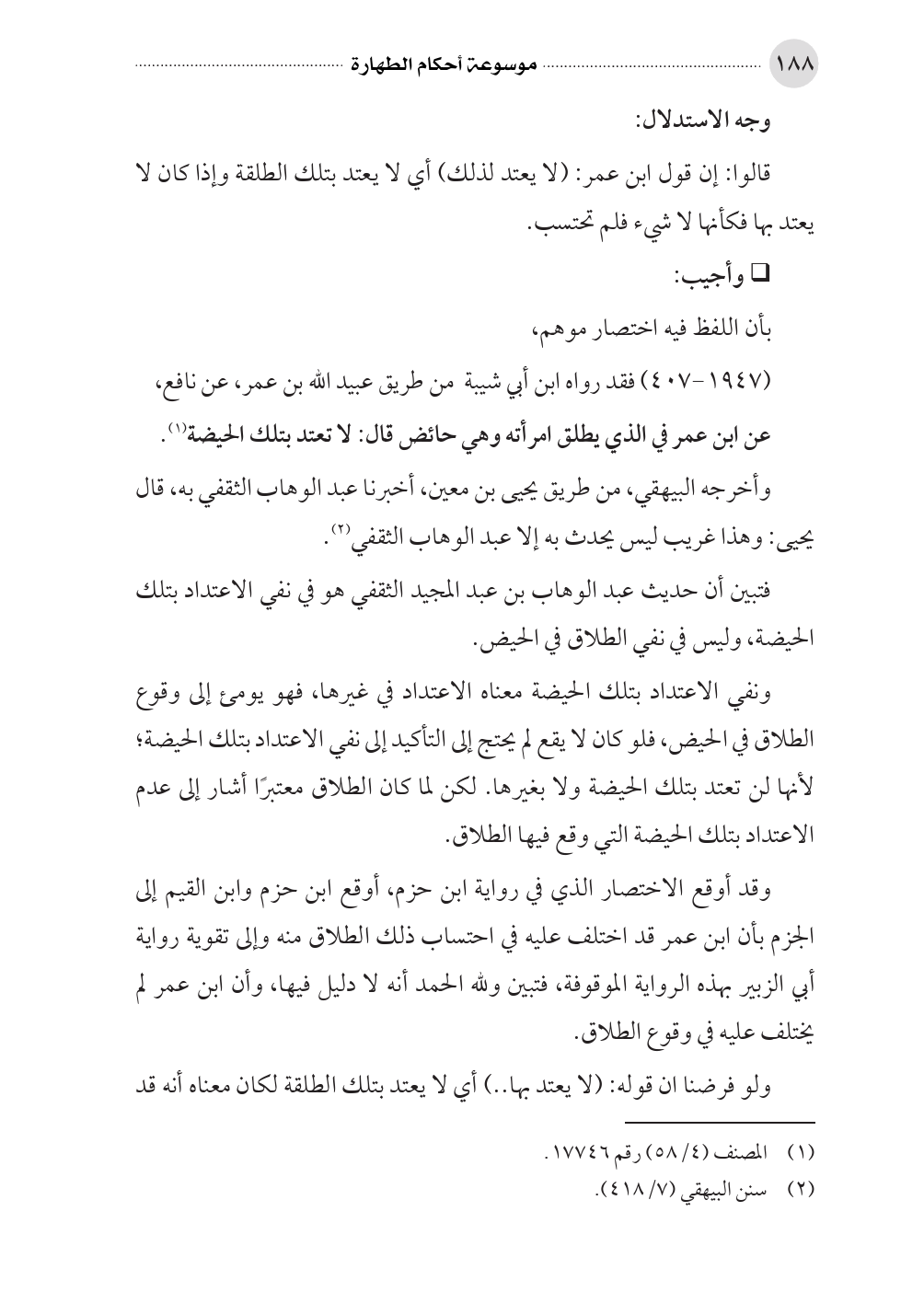 فتبين أن حديث عبد الوهاب بن عبد المجيد الثقفي هو في نفي الاعتداد بتلك الحيضة، وليس في نفي الطلاق في الحيض.