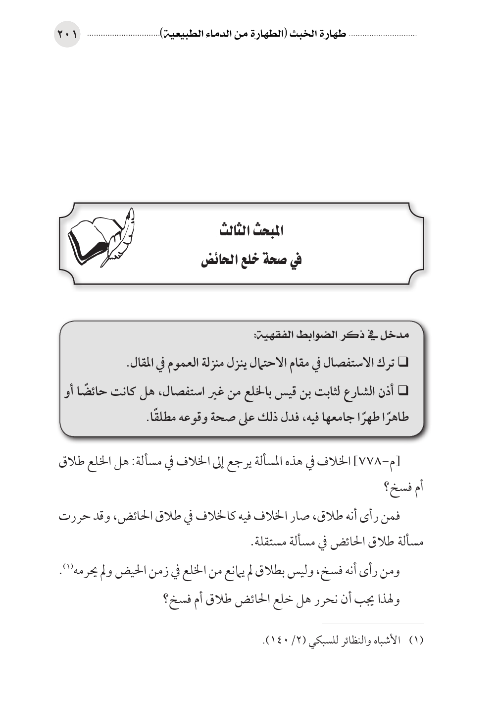 المبحث الثالث في صحة خلع الحائض